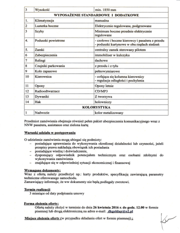 Ofertę należy złożyćw tsrminie do dnia 2ó kwietnia2Ot6 r. do godz. 12.00 w formie