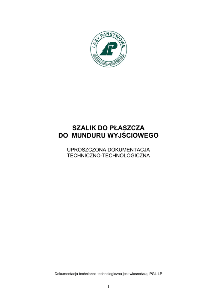 SZALIK DO PŁASZCZA DO MUNDURU WYJŚCIOWEGO UPROSZCZONA DOKUMENTACJA TECHNICZNO-TECHNOLOGICZNA Dokumentacja techniczno-technologiczna jest własnością PGL LP 1 SPIS TREŚCI 1. Wstęp 2. Przedmiot dokumentacji 2.1. Opis ogólny 2.2. Normy i dokumenty związane 3. Rysunek modelowy zwymiarowany 4. Wymagania techniczne 4.1 Dane dotyczące tkaniny 4.2 Rodzaje szwów i ściegów 5. Warunki obioru 6. Pakowanie, przechowywanie, transport 7. Oznakowanie - wzór etykiety 8. Arkusz ewidencji wprowadzonych zmian 9. Próbka tkaniny 10. Załączniki – certyfikaty, wyniki badań laboratoryjnych zastosowanych materiałów (potwierdzenie spełnienia wymagań techniczno-użytkowych) 2 1. WSTĘP Zgodnie z Zarządzeniem Nr 16 Dyrektora Generalnego Lasów Państwowych z dnia 14.03.2005 r. wprowadza się zmiany w dokumentacji technicznotechnologicznej szalika do płaszcza do munduru terenowego. 2. PRZEDMIOT DOKUMENTACJI Przedmiotem dokumentacji jest szalik do płaszcza do munduru wyjściowego. 2.1. OPIS OGÓLNY Szalik wykonany z tkaniny łatwo wracającej do pierwotnego wyglądu po zgnieceniach lub zmoknięciu, o wysokim stopniu odporności na piling. Kolor zielony nieco ciemniejszy od płaszcza, w tej samej tonacji co kapelusz. Wymiar: 140 cm x 25 cm 3 2.2. NORMY I DOKUMENTY ZWIĄZANE PN-82/P-04608 Wyroby konfekcyjne. Znaki ostrzegawcze. PN-83/P-84501 Wyroby konfekcyjne. Szwy. Klasyfikacje i oznaczenia. PN-83/P-84502 Wyroby konfekcyjne. Ściegi. Klasyfikacje i oznaczenia. PN-83/P-84506 Wyroby konfekcyjne. Badania odbiorcze. PN-84/P-06762 Odzież ochronna. Stopnie jakości. PN-80/P-81101 Nici odzieżowe. Postanowienia ogólne. PN-90/P-84530 Wyroby konfekcyjne. Składanie. PN-90/P-84531 Wyroby konfekcyjne. Oznaczenia. PN-88/P-84669 Odzież robocza i ochronna. Pakowanie, przechowywanie, transport. Wymagania ogólne. 4 3. RYSUNEK MODELOWY SZALIK DO PŁASZCZA DO MUNDURU WYJŚCIOWGO. SKALA 1:10 25 cm 140 cm 5 4. WYMAGANIA TECHNICZNE 4.1. TKANINA ZASADNICZA KOLOR: Nr 22 (według producenta) Producent tkaniny: TOMTEX Tomaszów Mazowiecki ARTYKUŁ: 6439/P 3345 ZNAK: 21/3575 - kolor zielony wg zatwierdzonego wzoru - surowiec – 65 % wełna, 15 % kaszmir, 20 % nylon - masa powierzchniowa – 390 g/m2 ±16 g/m2 - trwałość kolorów wg PN-ISO 105- nie mniej niż 3 stopnie - kurczliwość po praniu w 40 oC wg PN-EN 25077 od 3 do 4 % - wytrzymałość na rozciąganie wg PN-93/P-04968 min. 18 daN w obu kierunkach 4.2. RODZAJE SZWÓW I ŚCIEGÓW Gęstość ściegów obrzucających 40÷50/1 dm 5. WARUNKI ODBIORU Klasyfikację jakościową przeprowadza się zgodnie z normą PN-84/P-06762 Odzież ochronna. Stopnie jakości. Stosuje się dwa stopnie jakości. Zaliczanie wyrobu do odpowiedniego stopnia jakości zależy od liczby dopuszczalnych błędów. 6 Tabela 1 Liczba dopuszczalnych błędów występujących w 1 sztuce Jakość Błędy Błędy konfekcyjne 1 3 2 2 6 4 6. PAKOWANIE, PRZECHOWYWANIE I TRANSPORT 6.1. Pakowanie Szaliki do płaszcza do munduru wyjściowego pakowane są w pojedyncze worki foliowe a następnie w worki zbiorcze w ilości uzgodnionej z odbiorcą. Dopuszcza się uzgodnienie sposobu pakowania z zamawiającym. 6.2. Przechowywanie Szaliki przechowuje się w pomieszczeniach przewiewnych nienasłonecznionych warunkach zabezpieczających je przed wilgocią, zagnieceniami, w molami, uszkodzeniem mechanicznym i chemicznym. 6.3. Transport Szaliki należy przewozić krytymi środkami zabezpieczenie przed uszkodzeniem i wilgocią. 7 transportu, które gwarantują 7.OZNAKOWANIE WZÓR ETYKIETY Wszywka firmowo-rozmiarowa powinna zawierać: Znak firmy, adres Nazwę wyrobu/nr wzoru / wymiary Data produkcji Nr partii Etykieta jednostkowa powinna być przy każdej sztuce, znajdować się na wierzchu wyrobu i zawierać: - adres firmy - znak firmowy - nazwa wyrobu - symbol wyrobu - jakość - numer zlecenia - skład surowcowy Etykieta powinna się znajdować także na opakowaniu zbiorczym. Przykład: Rewers etykiety powinien zawierać przepis konserwacji Sposób konserwacji wg PN-EN ISO 3758:2006 Znaki informacyjne o sposobach konserwacji w postaci symboli graficznych. 8 8. ARKUSZ EWIDENCJI WPROWADZONYCH ZMIAN. Lp. Data Zmiana dotyczy (stron i ewentualnej treści zmiany) 9 Akceptacja (data i podpis) Uwagi 9. PRÓBKA TKANINY 10 10. ZAŁĄCZNIKI (dołącza producent) Certyfikaty lub wyniki badań laboratoryjnych materiałów (potwierdzenie spełnienia wymagań techniczno-użytkowych przez tkaninę) 11