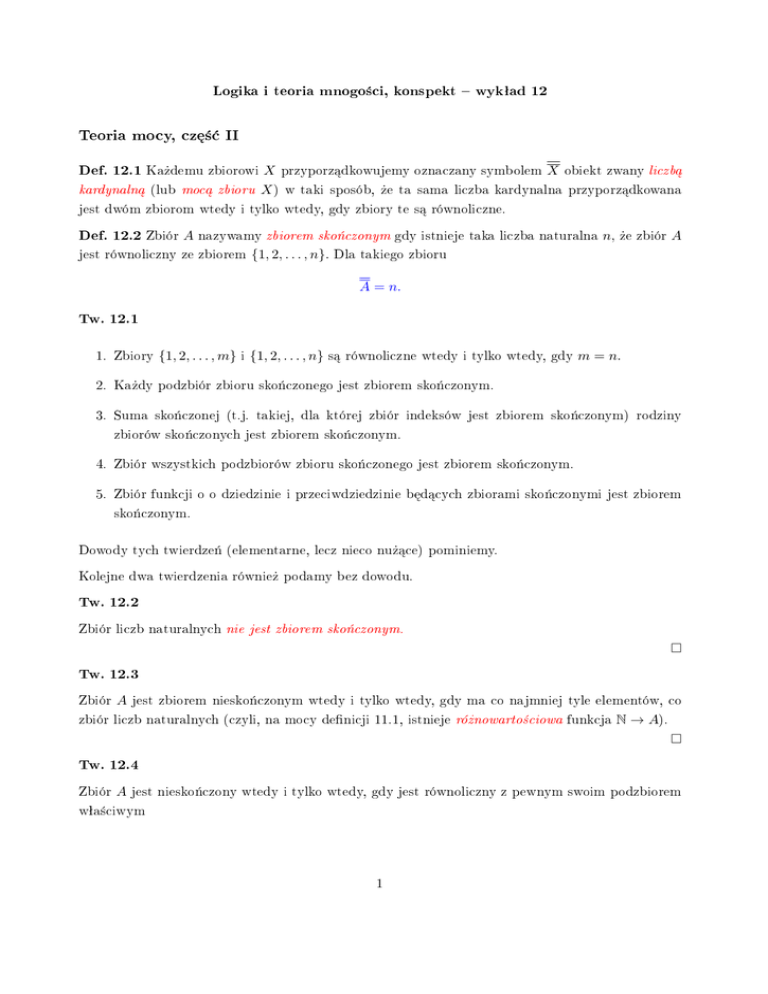 Def. 12.3 Zbiory sko«czone lub równoliczne z N nazywamy zbiorami