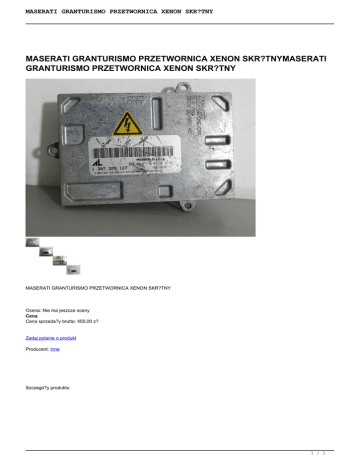 MASERATI GRANTURISMO PRZETWORNICA XENON SKR?TNY MASERATI GRANTURISMO PRZETWORNICA XENON SKR?TNYMASERATI GRANTURISMO PRZETWORNICA XENON SKR?TNY MASERATI GRANTURISMO PRZETWORNICA XENON SKR?TNY Ocena: Nie ma jeszcze oceny Cena Cena sprzeda?y brutto: 450,00 z? Zadaj pytanie o produkt Producent: Inne Szczegó?y produktu O NAS Od wielu lat zajmujemy si? skupem i sprzeda?? lamp samochodowych. Posiadamy bogaty asortyment zarówno lamp u?ywanych 1 / 3 MASERATI GRANTURISMO PRZETWORNICA XENON SKR?TNY pochodz?cych z demonta?u, jak i nowych cz??ci. Kupuj?c u nas masz pewno?? i gwarancj? rozruchow? towaru (14 dni od momentu odbioru). Istnieje mo?liwo?? zamówienia cz??ci, gdy? 2 razy w tygodniu realizowana jest nowa dostawa towaru. WYSY?KA Towar wysy?amy w tym samym dniu je?eli zamówienie zostanie z?o?one do godz.13:00 kurierem In Post lub Poczt? Polsk?. Po godz. 13:00 przesy?ka zostanie wys?ana w nast?pnym dniu roboczym. Istnieje mo?liwo?? wysy?ki paczek (forma p?atno?ci): - za pobraniem - przedp?ata na konto Przesy?ka z regu?y dociera na nast?pny dzie? roboczy. Paczki nadawane s? tylko w dni powszednie. Istnieje mo?liwo?? osobistego odbioru reflektorów po wcze?niejszej konsultacji. Maj? Pa?stwo prawo zwrotu zakupionego towaru w ci?gu 14 dni (ustawowo) wraz z dowodem zakupu i formularzem odst?pienia od umowy zawartym na naszej stronie : http://lampy-samochodowe.pl/media/files/Formularz_Odstapienia_OU.pdf bez podania przyczyny. Nie odbieramy przesy?ek za pobraniem. ZAKUP PRZEDMIOTU MASERATI GRANTURISMO PRZETWORNICA XENON SKR?TNY 1. Wybierz produkt i dodaj go do koszyka. 2. Wybierz sposób zap?aty/ odbioru, uzupe?nij dane do wysy?ki 3. Ewentualne sugestie prosz? wpisa? w polu wiadomo??. 4. Oczekuj na kuriera- sprawd? zawarto?? przesy?ki przy odbiorze (wszystkie paczki s? ubezpieczone) . MODEL STRON OPIS STAN CENA /MARK A CZ??CI MAGA A ZYNO WY MASER PRZETW 450,00 ATI GR ORNICA PLN ANTURI XENON SMO SKR?TN Y PARAGON/FAKTURA Do ka?dej zakupionej cz??ci do??czamy paragon . Je?li ?ycz? Pa?stwo sobie faktur?, prosimy o informacj? wraz z danymi niezb?dnymi do jej wystawienia. KONTAKT: Wszelkie zapytania prosimy kierowa? na e-mail: [email protected] Wszystkie przedmioty s? dok?adnie opisane i skatalogowane. Je?li masz dodatkowe pytania prosimy o kontakt pod nr tel.: 798-986-497 GODZINY OTWARCIA: Pracujemy od poniedzia?ku do pi?tku w godz. 8:00- 16:00. STRONA WWW: 2 / 3 MASERATI GRANTURISMO PRZETWORNICA XENON SKR?TNY www.lampy-samochodowe.pl ZAMIENNIKI: Nie kupuj zamienników na innych aukcjach. S? to cz??ci o krótkiej ?ywotno?ci i s?abej jako?ci wykonania. Pos?u?? na zdecydowanie krótszy czas ni? cz??ci oryginalne, mimo, ?e s? nowe. Zakup na naszych aukcjach jest jednoznaczny z akceptacj? regulaminu dost?pnego na naszej stronie. DZI?KUJEMY ZA ZAINTERESOWANIE 3 / 3 Powered by TCPDF (www.tcpdf.org)