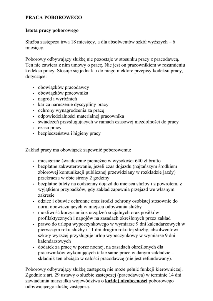 PRACA POBOROWEGO Istota pracy poborowego Służba zastępcza