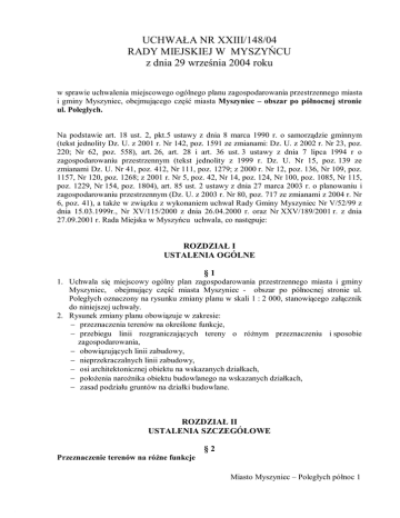 UCHWAŁA NR XXIII/148/04 RADY MIEJSKIEJ W MYSZYŃCU z