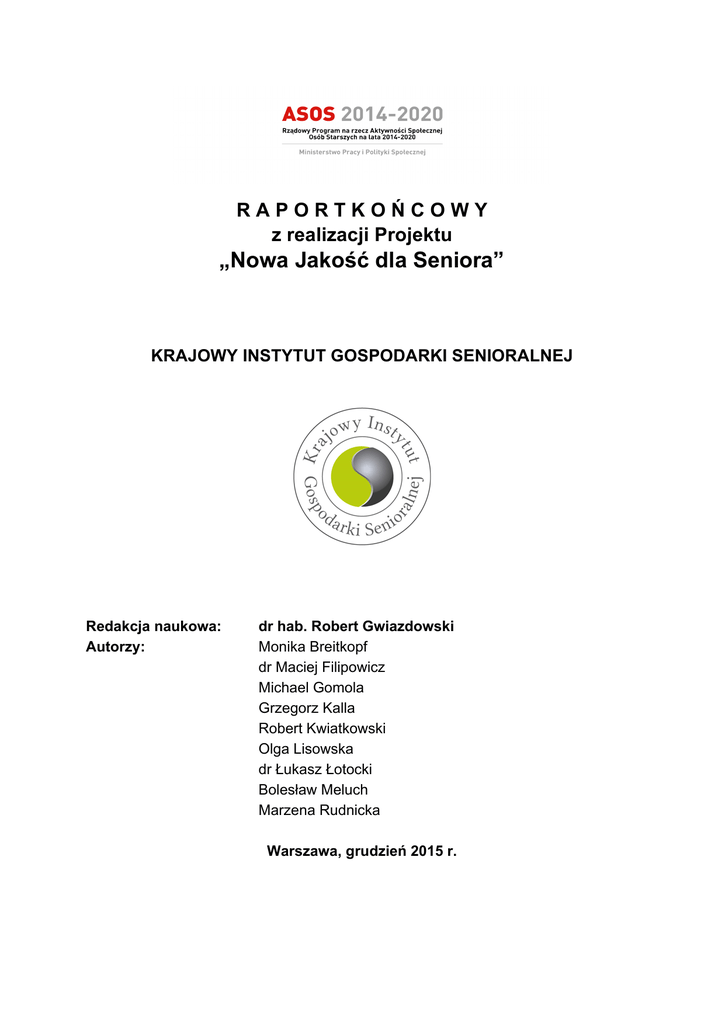 Raport z realizacji Projektu „Nowa Jakość dla Seniora”
