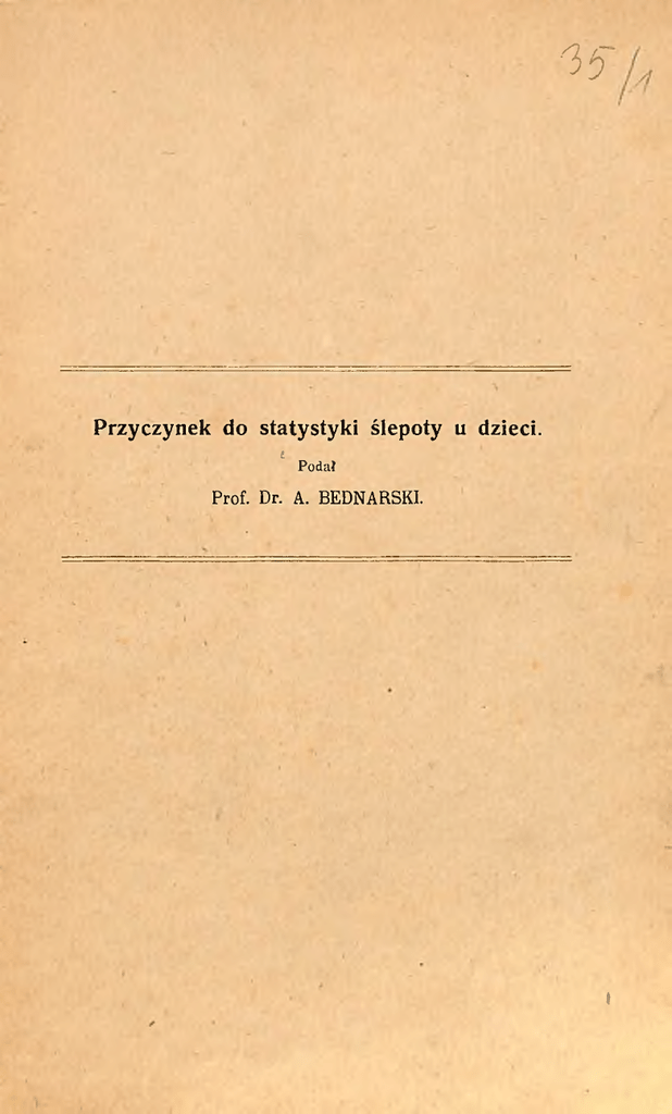 "35 Przyczynek do statystyki ślepoty u dzieci. £ Podał Prof. Dr. A. BEDNARSKI. ł Przyczynek do statystyki ślepoty u dzieci. Podał Prof. Dr. A. BEDNARSKI. W roku 1910 ogłosiłem w Tygodniku Lekarkim a w roku 1911 w Arch. d’Ophlalm. statystykę ślepoty u dzieci, opartą na rnateryale zebranym w szpitalu św. Zofii we Lwowie w la tach 1904—1909. Od tego czasu minęło lat 4 i przez ten czas prowadziłem dalej zapiski, dotyczące przyczyn ślepoty u dzieci i zebrałem d a l s z y c h 112 p r z y p a d kó w ś l e p o t y i 202 p r z y p a d k ó w u t r a t y w z r o k u n a j e d n e m oku. W tablicy, umieszczonej poniżej, przytoczyłem obok przy padków z r. 1910—1913, także przypadki dawniejsze przezemnie zebrane, aby razem z jednych i drugich obliczyć wspólny procent, tak, że dzisiejsza statystyka moja opiera się na 212 p r z y p a d k a c h ś l e p o t y i 402 p r z y p a d k a c h z a n i e w id z e n i a n a j e d n o o k o r a z e m n a 614 p r z y p a d k a c h . Przypadki z r. 1904—1909 omówiłem w poprzedniej publikacyi (1. c.), tutaj pozwolę sobie omówić przypadki z lat 1910—1913. 1. C i e r p i e n i a w r o d z o n e dały powód do ślepoty w 23 przypadkach: 13 przypadków microphtalmus v. anophtalmus cong., między tymi w jednym przypadku obustronna torbiel powieki dolnej. 43 przypadków zaniku nerwów wzrokowych, z tych je den powikłany zaćmą szczątkową, drżeniem tęczówki i drze- 2 niem gałek, drugi ubytkiem wrodzonym naczyniówki, zaś w 3 przypadku zanik tarczy nerwów wzrokowych dotyczył dziecka z wrodzonem wodogłowiem, tarcze były małe, jakby niedorozwinięte. \ Aeidnn***. /włovù ofłfr-t-ć. 1 przypadek retinitis pigmentosa. 1 przypadek glaucoma infantile. 3 przypadki amaurozy bez zmian anatomicznych, z tych jeden u dziecka z mikrocefalią. 1 wreszcie przypadek zaćmy powikłanej. W 10 przypadkach była ślepota jednego oka: 5 przypadków jaskry dziecięcej. 3 przypadki gałek zarodkowych. 2 przypadki zaćmy powikłanej. W przypadkach ślepoty wrodzonej, gdyby była sposo- . bność badania krwi W a s s e r m a n n e m , może dałoby się w niejednem wykryć kiłę, jako przyczynę ślepoty. 2. Ś l u z o r o p o t o k dał powód w 16 przypadkach do ślepoty, zaś w 27 przypadkach dzieci utraciły wzrok na jednem oku. Z wyjątkiem jednego przypadku, w którym 8 le tnia dziewczynka, zarażona od swej siostry nowonarodzonej, dotkniętej śluzoropotokiem, straciła jedno oko, były to wszyst ko przypadki śluzoropotoku noworodków. 3. W następstwie z a p a l e n i a p r y s z c z y k o w e g o spo j ó w k i (kerato-conj. phlyct.) i g r u ź l i c y oślepło 15 dzieci. Między temi w jednym przypadku przyszło do ślepoty w na stępstwie zmięknienia rogówek, skutkiem enteritis chronica na tle gruźliczem. Nadto jeszcze w dwóch przypadkach zapalenie pryszczykowe było powikłane przez enteritis follicidaris, i praw dopodobnie dlatego przyszło w tych dwóch przypadkach do zropienia rogówek; obraz kliniczny nie odpowiadał zmięknieniu rogówek raczej ciężkiej keratilis phlyctenulosa i dlatego przypadki te zaliczyłem do grupy gruźlicy. Wreszcie jedno dziecko oślepło skutkiem zapalenia jagodówki na tle gruźliczem. Reszta 11 przypadków odnoszą się do ślepoty w następstwie zapalenia pryszczykowego. Co do utraty wzroku na jednem oku w 68 przypadkach, 3 to były to prawie wyłącznie, bo w 66 przypadkach ciężkie zapalenia pryszczykowe rogówki, gdzie za zgłoszeniem się dzieci do szpitala stwierdzano suppuratio comme, prolapsus iridis, często totius. W jednym tylko przypadku była keratiłis e lagophtalmo u dziecka, które później zmarło na gruzełek móżdżku, zaś w drugim przypadku było zmięknienie rogówki u dzie cka wyniszczonego, z zapaleniem oskrzeli, z wybitnymi obja wami gruźlicy (Pirquet był w tym przypadku ujemny). 4 Po K u r z e oślepło 7 dzieci, z tych u dwojga stwier dzono zmięknienie rogówek, u jednego ciężkie zapalenie pry szczykowe. Troje zgłosiło się do ambulatoryuin już ze zupełnem zbliznowaceniem rogówek, a jedno ze zanikiem gałek, przyczem wedle wywiadów dzieci te wśród kuru, względnie wkrótce po kurze, utraciły wzrok. Sześcioro dzieci utraciło wzrok na jednem oku: W dwóch przypadkach stwierdzono panophtalmitis. W jednym przypadku już zbliznowanie rogówki, w jednym zanik gałki, wedle wy wiadów choroba oka wystąpiła wśród kuru lub tuż po kurze. W jednym przypadku po kurze przyszło do noma, potem do martwicy brzegu oczodołowego, odwinięcia powieki, zropienia rogówki i zaniku gałki. Wreszcie w ostatnim przypadku w dwa miesiące po kurze przyszło do zapalenia płuc, przy którem wytworzył się wrzód rogówki i wypadnięcie tęczówki — możnaby więc ten przypadek także zaliczyć do rubryki utraty oka w następstwie zapalenia płuc ewentualnie gruźlicy. 5. P ł o n i c a dała powód w dwóch przypadkach do śle poty. W jednym stwierdziłem już obustronny garbiak rogówki, po przebytej wśród płonicy sprawie zapalnej oczu, w drugim przypadku stwierdziłem na oddziale zakaźnym obustronne zmięknienie rogówek. W 8 przypadkach utraty jednego oka stwierdziłem: w je dnym przypadku panophtalmitis, w drugim obraz keratit. phhjct. malign., w innych już stan następowy a mianowicie w 2 przypadkach leucoma corn. tot. adh., w 2 przypadkach staphyl. corn, tot., a w 2 przypadkach phtisis bulbi. 6. Z a p a l e n i e p ł u c (broncho pneumonia) dało w je 1* 4 dnym przypadku powód do zmięknienia rogówek. Pirquet był ujemny. 7. Z a p a l e n i e mózgu, opon, w o d o g ł o wie. Oślepło 12 dzieci. 6-cioro oślepło po zapaleniu mózgu, przyczem w 3 przypadkach stwierdziłem uveitis melastatica, w 2 przypad kach zanik nerwu wzrokowego, a w jednym przypadku amblyopię. Znieksztacenie czaszki połączone z zanikiem nerwu wzrokowego po przebyłem zapaleniu tegoż dało powód w 3 przypadkach do ślepoty. Wodogłowie w 2 przypadkach dopro wadziło do 