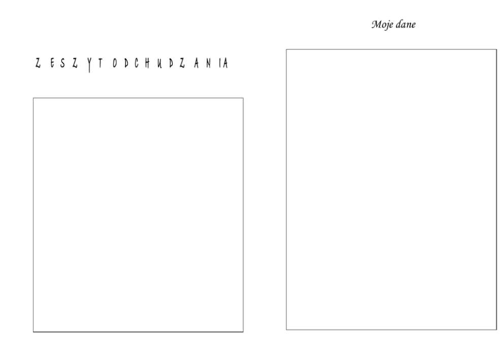 Moje dane ZESZYT ODCHUDZANIA MÓJ CEL G ÓWNY: _______________________________________________________________ _______________________________________________________________ _______________________________________________________________ _______________________________________________________________ Cele szczegó owe: ____________________________________________________________________ ____________________________________________________________________ ____________________________________________________________________ ____________________________________________________________________ ____________________________________________________________________ ____________________________________________________________________ ____________________________________________________________________ Jakie korzy ci da mi szczup a sylwetka? Co mnie motywuje?: 1___________________________________________________________________ 2___________________________________________________________________ 3___________________________________________________________________ 4___________________________________________________________________ 5___________________________________________________________________ 6___________________________________________________________________ 7___________________________________________________________________ 8___________________________________________________________________ 9___________________________________________________________________ 10__________________________________________________________________ 11__________________________________________________________________ 12__________________________________________________________________ 13__________________________________________________________________ 14__________________________________________________________________ 15__________________________________________________________________ 16__________________________________________________________________ 17__________________________________________________________________ 18__________________________________________________________________ 19__________________________________________________________________ 20__________________________________________________________________ Ile wa obecnie:___________Moje wymiary:_______________________________ ____________________________________________________________________ _______________________________________________________________ _______________________________________________________________ PLAN ODCHUDZANIA Moja dieta (opis):____________________________________________________ ___________________________________________________________________ ___________________________________________________________________ ___________________________________________________________________ ___________________________________________________________________ Z czego zrezygnuj :___________________________________________________ ___________________________________________________________________ ___________________________________________________________________ Co wprowadz do diety:_______________________________________________ ___________________________________________________________________ ___________________________________________________________________ Suplementy diety:____________________________________________________ ___________________________________________________________________ ___________________________________________________________________ Planowane formy ruchu Sporty aerobowe: rodzaj cz stotliwo uwagi wiczenia wzmacniaj ce rodzaj cz stotliwo uwagi Kosmetyki wyszczuplaj ce: ___________________________________________________________________ ___________________________________________________________________ ___________________________________________________________________ ___________________________________________________________________ ___________________________________________________________________ ___________________________________________________________________ Inne metody: ___________________________________________________________________ ___________________________________________________________________ ___________________________________________________________________ ___________________________________________________________________ ___________________________________________________________________ ___________________________________________________________________ Inne formy ruchu: ____________________________________________________________________ ____________________________________________________________________ ____________________________________________________________________ ____________________________________________________________________ ____________________________________________________________________ ____________________________________________________________________ Zabiegi piel gnacyjne: ____________________________________________________________________ ____________________________________________________________________ ____________________________________________________________________ ____________________________________________________________________ ____________________________________________________________________ ____________________________________________________________________ Moja lista przyjemno ci: 1__________________________________________________________________ 2__________________________________________________________________ 3__________________________________________________________________ 4__________________________________________________________________ 5__________________________________________________________________ 6__________________________________________________________________ 7__________________________________________________________________ 8__________________________________________________________________ 9__________________________________________________________________ 10____________________________________