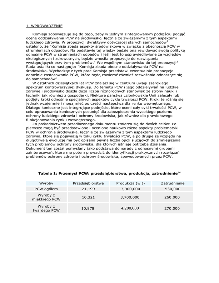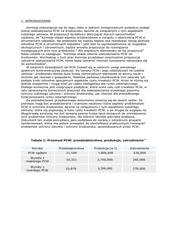 Tabela 1: Przemysł PCW: przedsiębiorstwa, produkcja, zatrudnienie14
