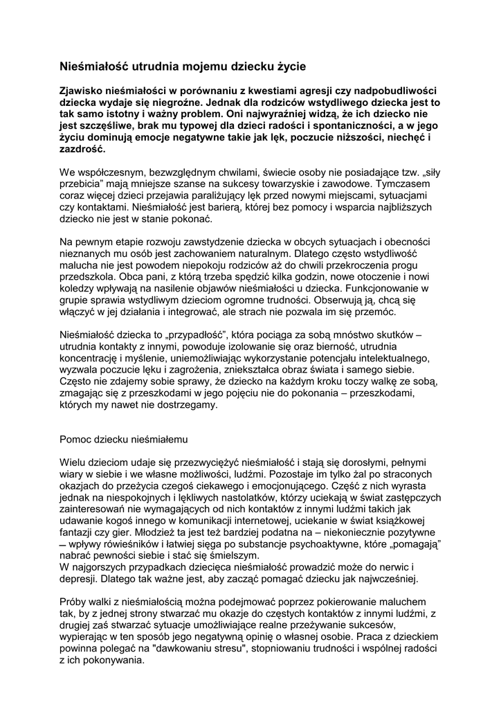czy kontaktami. Nieśmiałość jest barierą, której bez pomocy i wsparcia najbliŜszych