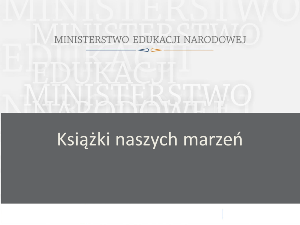 Książki naszych marzeń Podstawy prawne • Rada Ministrów 26 maja 2015 r. podjęła uchwałę w sprawie Rządowego programu wspierania w 2015 r. organów prowadzących szkoły podstawowe i szkoły artystyczne realizujące kształcenie ogólne w zakresie szkoły podstawowej w obszarze rozwijania zainteresowań uczniów przez promocję czytelnictwa wśród dzieci i młodzieży – „Książki naszych marzeń” • Aktem wykonawczym jest przyjęte Rozporządzenie Rady Ministrów w sprawie szczegółowych warunków, form i trybu realizacji Rządowego programu wspierania w 2015 r. organów prowadzących szkoły podstawowe i szkoły artystyczne realizujące kształcenie ogólne w zakresie szkoły podstawowej w obszarze rozwijania zainteresowań uczniów przez promocję czytelnictwa wśród dzieci i młodzieży – „Książki naszych marzeń” Cele programu Program „Książki naszych marzeń” ma wspierać organy prowadzące szkoły podstawowe i szkoły artystyczne realizujące kształcenie ogólne w zakresie szkoły podstawowej, przez zakup do bibliotek szkolnych książek: - książek o tematyce bliskiej współczesnym doświadczeniom uczniów; - książek niebędących podręcznikami, które są chętnie czytane i jednocześnie rozwijają kompetencje, zainteresowania i uzdolnienia dzieci i młodzieży. Program ma promować czytelnictwo wśród uczniów szkół podstawowych. Wybrane książki mają rozbudzać ciekawość ucznia. Mają uczyć czytania. O wyborze książek do bibliotek szkolnych mają współdecydować uczniowie i rodzice. Efekty programu Zakładamy, że wykorzystane z programu środki finansowe będą miały pozytywny wpływ na: • upowszechnienie edukacji czytelniczej i medialnej • wzrost czytelnictwa wśród uczniów • wspieranie bibliotek szkolnych w zakupie książek które będą rozwijały zainteresowania dzieci i młodzieży • promocję czytelnictwa Beneficjenci programu Organy prowadzące publiczne i niepubliczne szkoły podstawowe oraz szkoły artystyczne realizujące kształcenie ogólne w zakresie szkoły podstawowej Jednostki samorządu terytorialnego Osoby prawne niebędące jst Osoby fizyczne Minister Kultury i Dziedzictwa Narodowego Maksymalna wysokość wsparcia na zakup książek • Dla bibliotek szkolnych w szkołach, w których liczba uczniów wynosi do 70: 1 000 zł • Dla bibliotek szkolnych w szkołach, w których liczba uczniów wynosi od 71 do 170 : 1 300 zł • Dla bibliotek szkolnych w szkołach, w których liczba uczniów wynosi więcej niż 170: 2 170 zł Założenia programu • Organy prowadzące publiczne i niepubliczne szkoły podstawowe oraz szkoły artystyczne realizujące kształcenie ogólne w zakresie szkoły podstawowej szkoły podstawowe otrzymają z budżetu państwa wsparcie finansowe na zakup książek niebędących podręcznikami do szkolnych bibliotek. • Wsparcia finansowego udziela się w formie dotacji dla organów prowadzących oraz w formie dofinansowania dla Ministra Kultury i Dziedzictwa Narodowego. • Wsparcia finansowego udziela się pod warunkiem zapewnienia przez organ prowadzący szkołę finansowego wkładu własnego w wysokości co najmniej 20% kwoty kosztów realizacji zadania objętego dofinansowaniem z budżetu państwa. Zadania organów prowadzących Organy prowadzące, które uzyskały wsparcie finansowe, są zobowiązane: 1) Pomóc szkołom w nawiązaniu współpracy z bibliotekami publicznymi i publicznymi bibliotekami pedagogicznymi w zakresie: • konsultowania planowanych zakupów książek, • wymiany informacji o imprezach promujących czytelnictwo. 2) Zapewnić organizację co najmniej dwóch wydarzeń promujących czytelnictwo z udziałem uczniów. 3) Uwzględnić tematykę wpływu czytania na rozwój dzieci podczas zorganizowanego przez szkołę co najmniej jednego spotkania z rodzicami. 4) Wesprzeć realizację co najmniej jednego projektu edukacyjnego na oddział w szkole z wykorzystaniem księgozbioru biblioteki szkolnej. 4) Wspierać organizację pracy bibliotek szkolnych do potrzeb uczniów, w tym przez umożliwienie im wypożyczania książek również na okres ferii zimowych i letnich. Zasady wsparcia finansowego Minister właściwy do spraw oświaty i wychowania Wojewodowie Minister Kultury i Dziedzictwa Narodowego Organy prowadzące Dyrektorzy szkół Dyrektorzy szkół Zasady wsparcia finansowego • Dyrektor szkoły – z własnej inicjatywy, na wniosek rady pedagogicznej, rady rodziców lub samorządu uczniowskiego – składa do organu prowadzącego szkołę wniosek o udzielenie wsparcia finansowego na zakup książek do biblioteki szkolnej, z uwzględnieniem potrzeb uczniów niepełnosprawnych. Wniosek powinien zawierać następujące dane dotyczące szkoły: 1) nazwę i adres szkoły; 2) numer REGON szkoły; 3) liczbę uczniów; 4) zwięzły opis dotyczący aktualnego wyposażenia biblioteki szkolnej; 5) kalkulację kosztów zakupu książek; 6) wnioskowaną kwotę wsparcia finansowego na zakup książek. Do wniosku dyrektor szkoły dołącza opinie rady pedagogicznej, rady rodziców i samorządu uczniowskiego, dotyczące planowanego zakupu książek. Zasady wsparcia finansowego Z wnioskiem o udzielenie wsparcia finansowego na zakup książek: 1) organ prowadzący szkołę występuje do wojewody; 2) szkoła artystyczna, dla której organem prowadzącym jest minister właściwy do spraw kultury i ochrony dziedzictwa narodowego, występuje do tego ministra. Wniosek organu prowadzącego szkołę do wojewody powinien zawierać: 1) nazwę i adres organu prowadzącego szkołę; 2) liczbę szkół wnioskujących o udzielenie wsparcia finansowego; 3) numery REGON szkół wnioskujących o uzyskanie wsparcia finansowego; 4) zwięzły opis aktualnego wyposażenia bibliotek szkół wnioskujących o udzielenie wsparcia finansowego; 5) zbiorczą kalkulację kosztów zakupu książek; 6) wnioskowaną, łączną kwotę wsparcia finansowego na zakup książek; 7) informację o finan
