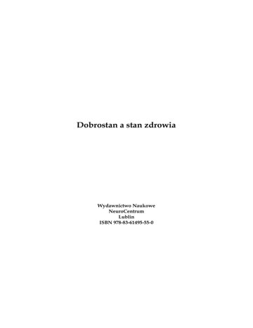 Dobrostan a stan zdrowia Wydawnictwo Naukowe NeuroCentrum Lublin ISBN 978-83-61495-55-0 Redaktor naukowy Wydawnictwa Krzysztof Turowski Korekta i tłumaczenie Mark Wheatley Statystyka Józef Jasik Projekt okładki Sławomir Wróbel Wydawca Wydawnictwo Naukowe NeuroCentrum ul. Hirszfelda 3/9 U 20-092 Lublin ISBN 978-83-61495-55-0 Druk ‘WSCHÓD’ AG.Usł. ul. Długa 5, Lublin Dobrostan a stan zdrowia Redaktorzy naukowi Prof. dr hab. n. biol. Józef TATARCZUK Uniwersytet Zielonogórski Dr n. o kult. fiz. Małgorzata MARKOWSKA Uniwersytet Jana Kochanowskiego w Kielcach Recenzenci Prof. dr hab. n. med. Krystyna MARKOCKA MĄCZKA Uniwersytet Medyczny we Wrocławiu Prof. dr hab. n. med. Krystyna KURLEJ Uniwersytet Medyczny we Wrocławiu Prof. dr hab. n. hum. Bożena ZBOINA Wyższa Szkoła Biznesu i Przedsiębiorczości w Ostrowcu Świętokrzyskim Lublin, 2016 SPIS TREŚCI Belniak Ewa, Halczuk Iwona, Tynecka-Turowska Marta, Belniak Piotr, Mitosek-Szewczyk Krystyna, Rejdak Konrad Czy stwardnienie rozsiane to choroba tylko młodych ludzi? Is Multiple Scleosis the disease of young adults only? 011 Artykuł zawiera 26223 znaki ze spacjami Bilewicz-Wyrozumska Teresa, Wołkowicz Jolanta, Bilewicz-Stebel Monika, Krenzel Izabella, Grund Damian, Momot Ewa, Krukowska Joanna Koordynowana opieka zdrowotna i jej wpływ na dobrostan społeczeństwa Coordinated health care and its impact on the wellness of society 021 Artykuł zawiera 43127 znaków ze spacjami Celej-Szuster Jolanta, Turowski Krzysztof, Lorencowicz Regina, Przychodzka Elżbieta, Sadura Dorota Komunikowanie w aspekcie wsparcia społecznego pacjentów z dyskopatią lędźwiową Communicating in terms of social support in patients with lumbar discopathy 037 Artykuł zawiera 32435 znaków ze spacjami Downarowicz Patrycja, Kawala Beata, Kulej Wiesław, Mandzios Natalia, Staszak Katarzyna Dobrostan a wiek w zakresie układu stomatognatycznego Wellness and age in the stomatognathic system 049 Artykuł zawiera 29036 znaków ze spacjami Gałuszka Renata, Gałuszka Grzegorz, Borecki Mateusz, Wrona Waldemar Diagnostyka na potrzeby fizjoterapii dzieci z asymetrycznymi wadami postawy Diagnostics to needs of the physiotherapy of children with asymmetrical abnormal spinal curvatures 061 Artykuł zawiera 30055 znaków ze spacjami Kurlej Wiesław, Nelke Kamil, Korjat Joanta, Stachura-Pużyńska Alicja, Mandzios Natalia, Staszak Katarzyna Lęk przed wizytą stomatologiczną, stan uzębienia i zachowania prozdrowotne wybranych grupy studentów Fear for dental visits, dental conditions and overall healthy behaviors of selected student group 075 Artykuł zawiera 22464 znaki ze spacjami Lautenbach Dariusz, Rolnik Agnieszka, Kaźmierczak Aleksandra, Malczewska Blanka, Preis Krzysztof Przebieg ciąży i porodu oraz stan okołourodzeniowy noworodków u kobiet z niedoczynnością tarczycy leczonych L-tyroksyną Course of pregnancy and labour and neonatal outcomes of women with hypothyroidism treated with levothyroxine 087 Markocka-Mączka Krystyna, Grabowski Krzysztof, Taboła Renata Przełyk Barretta: diagnostyka, monitorowanie i leczenie Barrett’s esophagus: diagnostics, monitoring and treatment 107 Artykuł zawiera 31749 znaków ze spacjami + grafika Artykuł zawiera 20004 znaków ze spacjami + grafika Markowska Małgorzata, Wójcik Tomasz, Nowak-Starz Grażyna, Pobiega Malwina Wpływ zabiegów fizjoterapeutycznych na poziom odczuwalnego bólu u pacjentów z chorobą zwyrodnieniową w odcinku lędźwiowo-krzyżowym kręgosłupa Influence of physiotherapeutic treatments on an appreciable level of pain in patients with osteoarthritis in the episode lumbosacral spine 117 Artykuł zawiera 23600 znaków ze spacjami (19813 znaków + 284,1 cm2 grafiki) Martyniuk-Gęca Agnieszka, Papuć Ewa, Tynecka-Turowska Marta, Rejdak Konrad Choroba Alzheimera i jej rzadkie warianty oraz implikacje dla jakości życia Alzheimer’s disease, its rare variants and implications for quality of life Artykuł zawiera 32370 znaków ze spacjami 127 Mitosek-Szewczyk Krystyna, Buczek Elżbieta, Halczuk Iwona, Belniak Ewa, Tynecka-Turowska Marta, Krystyna Szewczyk Anna, Rejdak Konrad Stres jako czynnik ryzyka w stwardnieniu rozsianym Stress as a risk factor in multiple sclerosis 139 Artykuł zawiera 20010 znaków ze spacjami Nowak-Starz Grażyna, Siwek Marta, Babiarz Anna, Salwa Agata Zakażenie wirusami HIV i HCV jako aktualny problem epidemiologiczny na świecie HIV and HCV infections as a worldwide live epidemiological Issue 147 Artykuł zawiera 25807 znaków ze spacjami + grafika Joanna Elżbieta Owczarek, Małgorzata Radwan-Oczko Zaburzenia czynnościowe układu ruchowego narządu żucia a wiek pacjentów Temporomandibular disorders and patients age 157 Artykuł zawiera 27540 znaków ze spacjami Przychodzka Elżbieta, Turowski Krzysztof, Lorencowicz Regina, Jasik Józef, Celej-Szuster Jolanta Subiektywna ocena wybranych aspektów satysfakcji z pobytu w szpitalu pacjentów z dysfunkcją kręgosłupa Subjective evaluation of some chosen aspects of satisfaction of patients hospitalized for spine dysfunction 167 Strzelecka Agnieszka, Syrkiewicz-Świtała Magdalena Rola komunikacji w ochronie zdrowie na przykładzie systemu teleinformatycznego „Zintegrowany Informator Pacjenta” The role of communication in the health care on the example of ICT system "Integrated Patient Information" 181 Artykuł zawiera 26688 znaków ze spacjami + grafika Artykuł zawiera 22929 znaków ze spacjami + grafika Wyciślik Natalia, Janusz-Jenczeń Magdalena, Hornik Beata, Włodarczyk Iwona Styl życia kobiet ciężarnych Pregnant women lifestyle Artykuł zawiera 30248 znaków ze spacjami + grafika 195 Zboina Bożena, Ślusarska Barbara, Słabczyńska Marta Wybrane elementy kształtujące jakość życia pacjentów po zabiegach angioplastyki tętnic wieńcowych leczonych w ośrodku kardiologii inwazyjnej Selected elements determining the quality of life of patients after angioplasty surgery of coronary arteries, t