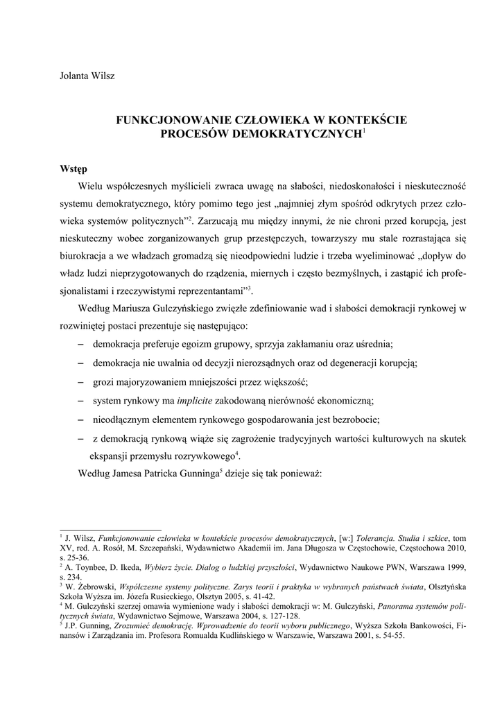 Funkcjonowanie człowieka w kontekście procesów demokratycznych