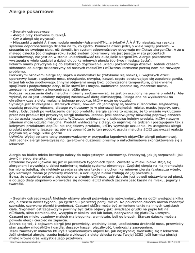 ukształtowany, nie jest on w stanie unieszkodliwiać tak dużą ilość alergenÃłw. Alergie pokarmowe