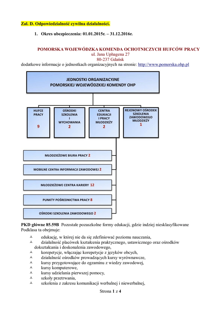 Strona 1 z 4 Zał. D. Odpowiedzialność cywilna działalności. 1. Okres