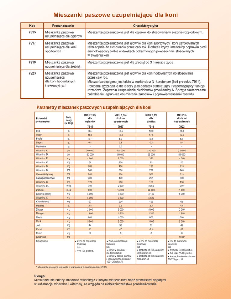 Mieszanki paszowe uzupe³niaj¹ce dla koni