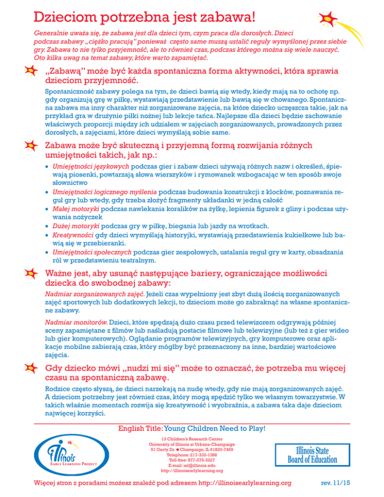 Dzieciom potrzebna jest zabawa! - the Illinois Early Learning Project!