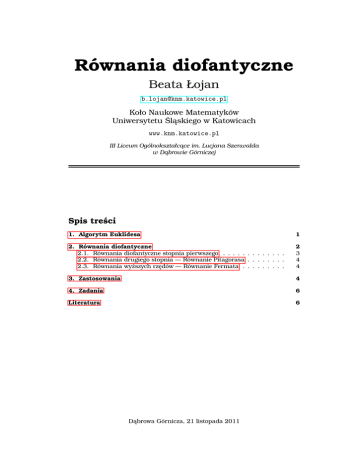 Równania diofantyczne – III LO DG
