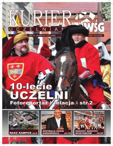 2 NASZE DZIESIĘCIOLECIE Szanowni Goście, Drodzy i Szanowni Założyciele Uczelni, pracownicy i studenci Wyższej Szkoły Gospodarki w Bydgoszczy Dzisiejsze Święto wieńczy w sposób symboliczny pierwsze 10 lat działalności Wyższej Szkoły Gospodarki w Bydgoszczy. Jubileusz jest zwykle okazją do podsumowań, momentem, który skłania do spojrzenia w przeszłość, do oceny stanu obecnego, a także do refleksji nakreślającej perspektywy rozwojowe. Rozpocznę od krótkiej oceny minionego dziesięciolecia. Można z dumą stwierdzić, że nie zmarnowaliśmy tych lat. Warto dla ich podsumowania wykorzystać dwa pojęcia, które określają zmiany: wzrost i rozwój. Ten pierwszy termin oznacza zwiększanie się istniejących zasobów kapitału, pracy, środków, i zwykle jest mierzony za pomocą mierników ilościowych. Ten drugi odnosi się do zmian strukturalnych i jakościowych. Oba terminy są przydatne do opisu dynamiki naszej Uczelni. Z pewnością wyróżnikiem Wyższej Szkoły Gospodarki jest znaczący wzrost zasobów i środków w minionym dziesięcioleciu. Warto przypomnieć, że naszą działalność w roku akademickim 1999/ 2000 rozpoczynaliśmy w jednym budynku, z jednym kierunkiem, jedną specjalnością i grupą kilkuset studentów. Dzisiaj kształcimy ponad 6,5 tys. studentów na 14 kierunkach i ponad 50 specjalnościach, zatrudniamy 450 nauczycieli akademickich, pracujemy w 14 budynkach. Jednocześnie w okresie tym następowały zmiany strukturalne i jakościowe. Zaczynaliśmy funkcjonowanie pod nazwą Wyższej Pomorskiej Szkoły Turystyki i Hotelarstwa, założonej przez Wielobranżowe Przedsiębiorstwo KOLFER, wpisanej do rejestru szkół wyższych w dniu 17 marca 1999 r. Te początki Uczelni, śmiało zarysowane przez Założycieli stworzyły dogodną perspektywę. Okazało się, że kształcenie w zakresie turystyki dało nam trwałe podstawy rozwoju, pozwoliło na rozbudowę Uczelni, stworzyło silny impuls, który umożliwił zmiany jakościowe i strukturalne. W sposób symboliczny wyraża to zmiana nazwy Uczelni na Wyższą Szkołę Gospodarki, datowana na dzień 1 stycznia 2005 r. Sądzę, że nazwa ta najlepiej wyraża dzisiejszy charakter i rangę Uczelni. Po dziesięciu latach stała się ona znaczącym składnikiem krajowego systemu szkolnictwa wyższego w Polsce, zauważalnym i cenionym w kraju i za granicą, stała się Uczelnią, która cieszy się znacznym uznaniem środowisk akademickich i kulturalnych regionu i miasta oraz dużym zainteresowaniem młodzieży, co znajduje swój wyraz w corocznej rekrutacji. Uczelnia wrosła w krajowe środowisko akademickie, zintegrowała się z otoczeniem, stała się miejscem wielu wydarzeń naukowych i społeczno–kulturalnych. Śmiem twierdzić, mając na uwadze nasze silne związki z otoczeniem społeczno–kulturalnym i praktyką gospodarczą, że Wyższa Szkoła Gospodarki pełni obecnie w regionie funkcję uniwersytetu techniczno–ekonomicznego. Wraz z rozszerzaniem oferty edukacyjnej następowała rozbudowa struktury Uczelni – z uczelni jednowydziałowej w jednostkę składającą się z pięciu wydziałów, w tym dwóch zamiejscowych. Powstały nowe instytuty, zakłady naukowo–badawcze, nastąpiły znaczące zmiany jakościowe w kadrze nauczycieli akademickich. W gronie 450 nauczycieli znajduje się dziś 29 profesorów tytularnych, 32 doktorów habilitowanych i 158 doktorów. Powstał rozległy kampus uczelniany, obejmujący obecnie 14 budynków, położony w malowniczym zakątku Brdy. Warto podkreślić, że jest to znamienny przykład rewitalizacji terenów poprzemysłowych, w wyniku lokalizacji na tym obszarze funkcji wyższego rzędu – szkolnictwa, nauki i kultury, powstał nowy, dynamicznie rozwijający się fragment przestrzeni miejskiej Bydgoszczy. Mam nadzieję, że efekty te doceniane są przez władze miasta Bydgoszczy, które obserwując z uwagą rozwój naszej Uczelni będą miały w pamięci jej zasługi dla rozwoju miasta i regionu. Szanowni Państwo, Dynamiczny rozwój naszej Uczelni nie byłby możliwy bez śmiałej i twórczej wizji Założycieli Uczelni, Pani Dyrektor Generalnej Małgorzaty Szymańskiej-Sikory i Pana Kanclerza Krzysztofa Sikory. Ich konsekwencja i rozmach w realizacji tej wizji dały znakomite rezultaty w postaci doskonale funkcjonującej Uczelni, wyposażonej w nowoczesną bazę dydaktyczną i badawczą, zatrudniającej wytrawną kadrę nauczycieli akademickich z wieloletnim doświadczeniem akademickim i zawodowym. Niech mi będzie wolno w imieniu całej społeczności pracowników i studentów Wyższej Szkoły Gospodarki oraz własnym wyrazić uznanie dla wybitnych osiągnięć Założycieli w zakresie rozwoju szkolnictwa wyższego w naszym kraju, a jednocześnie szczerze życzyć dalszych lat owocnej działalności, znakomitego zdrowia, wielu sukcesów i wszelkiej pomyślności. Szanowni Państwo, Kształcenie jest i będzie podstawowym działaniem naszej Uczelni. Zgodnie z ustawą „Prawo o szkolnictwie wyższym” i statutem Wyższej Szkoły Gospodarki zwracamy szczególna uwagę: 1) na kształcenie studentów w celu przygotowania ich do pracy zawodowej, zdobywania i uzyskiwania wiedzy, 2) na wychowanie studentów w poczuciu odpowiedzialności za państwo polskie, na umacnianie zasad demokracji i poszanowanie praw człowieka, 3) na upowszechnianie i pomnażanie osiągnięć nauki, kultury i techniki. Ważnym elementem naszej działalności jest stałe dążenie do poprawy jakości kształcenia. Efektem tych działań są pozytywne oceny jakości kształcenia na kierunkach kształcenia wizytowanych przez Państwową Komisję Akredytacyjną. Mam zaszczyt poinformować, że w dniu dzisiejszym, szczególnie uroczystym dla całej Uczelni, nadeszła radosna wiadomość w postaci Uchwały Prezydium Państwowej Komisji Akredytacyjnej dającej nam pozytywną ocenę jakości kształcenia na kierunku „ turystyka i rekreacja” prowadzonym na Wydziale Turystyki i Geogr
