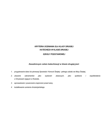 kryteria oceniania dla klasy drugiej katecheza w klasie