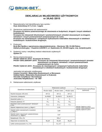 PDF DWU nr 3 ŁAG 2015 - Grys dolomitowy 8-11,2 - Intrac Bruk-Bet
