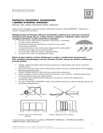 Instrukcja transportu, składowania i obróbki wyrobów Rheinzink