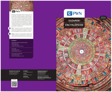 © HUGHES Hervé/Corbis/FotoChannels Wydawnictwo Naukowe PWN istnieje ponad 60 lat. Jesteśmy najbardziej znanym i największym na polskim rynku wydawcą publikacji służących zdobywaniu wiedzy i informacji. Nasze książki są aktualne i nowoczesne nie tylko ze względu na prezentowaną w nich treść, ale również i formę. Dlatego też wiedzę w nich zgromadzoną przekazujemy nie tylko na tradycyjnym nośniku, jakim jest papier, ale również w postaci elektronicznej, co znalazło odzwierciedlenie w niniejszym katalogu w postaci specjalnych ikon oznaczających odpowiednio: SŁOWNIKI 2014 ENCYKLOPEDIE ePub – nowoczesny format wersji elektronicznej książek, którego największą zaletą jest płynne dopasowywanie publikacji do urządzenia, na którym jest ona przeglądana i kupuje się go raz na zawsze. ibuk.pl – czytelnia on-line podręczników akademickich i książek naukowych w języku polskim, w której można wypożyczyć książkę elektroniczną na dowolny okres. Wydawcy Menedżer Pionu Wydawniczego Sylwia Krawczyk tel. (22) 695 44 34 [email protected] Lidia Drabik tel. (22) 695 44 68 [email protected] Danuta Borowska-Mostafa tel. (22) 695 40 49 [email protected] Sprzedaż wysyłkowa Księgarnia Wysyłkowa ul. Gottlieba Daimlera 2 02-460 Warszawa Internet www.ksiegarnia.pwn.pl E-mail [email protected] Infolinia 801-33-33-88 kup teraz katalog_referencyjnea_cover.indd 1 Sprzedaż publikacji obrandowanych Agnieszka Borzęcka tel. (22) 695 40 57 [email protected] Informacje w sprawie reklam na łamach książek [email protected] 4/17/14 8:38 PM SŁOWNIKI I ENCYKLOPEDIE SŁOWNIKI 3 SERIA ZŁOTA 5 SERIA SREBRNA 9 SERIA W KRATKĘ Seria obejmuje największe na polskim rynku podstawowe słowniki języka polskiego – wszechstronnie opisują język, razem stanowią kompendium wiedzy o języku. Są aktualne, wiarygodne i normatywne, opracowane pod redakcją naukową cenionych językoznawców. Uwzględniają rozstrzygnięcia Rady Języka Polskiego przy Prezydium PAN. Dzięki zawartym w nich informacjom możemy używać słów świadomie i poprawnie. Seria przeznaczona jest dla osób, których narzędziem pracy jest język: nauczycieli, dziennikarzy, redaktorów i tłumaczy oraz studentów i miłośników języka. Do większości tytułów w serii dołączona jest gratis płyta CD z odpowiednikiem danego słownika w serii srebrnej. 11 „Z BRALCZYKIEM” Wielki Slownik poprawnej 2014:Wielki Slownik poprawnej 08 3/27/14 3:20 PM Page 2 12 SŁOWNIKI POZA SERIAMI WIELKI S¸OWNIK WIELKI S¸OWNIK 15 PORADNIKI JĘZYKA POLSKIEGO Wielki słownik poprawnej polszczyzny PWN red. nauk. Andrzej Markowski po praw� � � � nej � Informuje, jak mówić i pisać po polsku, a także ostrzega, jakich błędów unikać. PWN Obejmuje 30 000 haseł, w tym wyrazy dawne, regionalizmy, słownictwo środowipo praw� skowe i potoczne. Zawiera 26 000 komentarzy normatywnych. Dzięki rozróżnieniu nej � polszczyzny dwóch norm językowych, wzorcowej i użytkowej, kwalifikuje wyrazy odpowiednio PWN do sytuacji, w których mogą być używane. Odrębne bloki haseł problemowych, a także cząstek wyrazowych czynią z tego słownika niezastąpione kompendium językowe dla każdego, kto chce pięknie i poprawnie mówić po polsku. polszczyzny 15 SERIA DUŻYCH PORADNIKÓW Wielki� s∏ownik� poprawnej� polszczyzny� PWN� jest� najwi´kszym� s∏ownikiem� spoÊród� tych,� które� uczà,� jak� pisaç� i� mówiç� poprawnie� oraz� jakich� b∏´dów� unikaç.� Zawiera: n� 30� 000� hase∏,� w� tym� wyrazy,� które� niedawno� wesz∏y� do� polszczyzny,� wyrazy� dawne,� wyst´pujàce� jeszcze� we� frazeologizmach� i� przys∏owiach,� regionalizmy,� s∏ownictwo� Êrodowiskowe� i� potoczne 16 SERIA MAŁYCH PORADNIKÓW n� 26� 000� komentarzy� normatywnych n� dwie� normy� j´zykowe:� oficjalnà� i� potocznà� n� imiona,� nazwiska,� skróty� i� skrótowce,� nazwy� geograficzne� i� etniczne� –� dla� wygody� w∏àczone� alfabetycznie� do� zasadniczej� cz´Êci� s∏ownika n� osobny� blok� hase∏� problemowych� stanowiàcy� obszerne� kompendium� j´zykowe:� akcent,� anglicyzmy,� antonimia,� archaizmy,� argotyzmy,� augmentativum� i� ponad� 100� innych n� indeks� poj´ç� omówionych� w� has∏ach� problemowych,� u∏atwiajàcy� 19 SŁOWNIKI JĘZYKÓW OBCYCH korzystanie� z� nich n� odr´bny� wykaz� czàstek� wyrazowych� (przedrostków� i� przyrostków) korpus j´zyka polskiego SERIA SŁOWNIKÓW ANGIELSKO-POLSKICH ENCYKLOPEDIE 28 ENCYKLOPEDIE POWSZECHNE 29 ENCYKLOPEDIE SZKOLNE 31 ZAPOWIEDZI polszczyzny PWN 168x238 mm s. LII + 1708 opr. twarda, CD cena 84,90 zł 23 SŁOWNIKI TEMATYCZNE 26 WERSJE ELEKTRONICZNE SŁOWNIKÓW po praw nej� w w w. k o r p u s . p w n . p l 20 INNE SŁOWNIKI JĘZYKÓW OBCYCH 25 SERIA „FIRST STEPS...” S¸OWNIK Podstawà� êród∏owà� s∏owników� PWN� jest� Korpus� J´zyka� Polskiego� –� elektroniczny� zbiór� tekstów, który� gwarantuje� naszym� s∏ownikom� wiarygodnoÊç. Wydawnictwo Naukowe PWN infolinia: 801 33 33 88 www.pwn.pl 19 I POLSKO-ANGIELSKICH PWN-OXFORD � �� �� �� �� �� �� �� WIELKI Wielki słownik ortograficzny PWN Wydanie nowe red. nauk. Edward Polański Słownik pozytywnie zaopiniowany przez Radę Języka Polskiego przy Prezydium PAN. Nowoczesny i wiarygodny. Obejmuje 140 000 haseł. Uwzględnia najnowsze zmiany w ortografii i notuje słowa, które niedawno pojawiły się w naszym języku, np. chillout, empetrójka, googlować, hikikomori, ożędka, szahid. Zawiera też obszerny wykład zasad pisowni i interpunkcji oraz odsyłacze od haseł do zasad, co pomaga uogólnić wiadomości i przyswoić sobie wiedzę, która będzie użyteczna w przyszłości. 168x238 mm s.168 + 977 opr. twarda, CD c