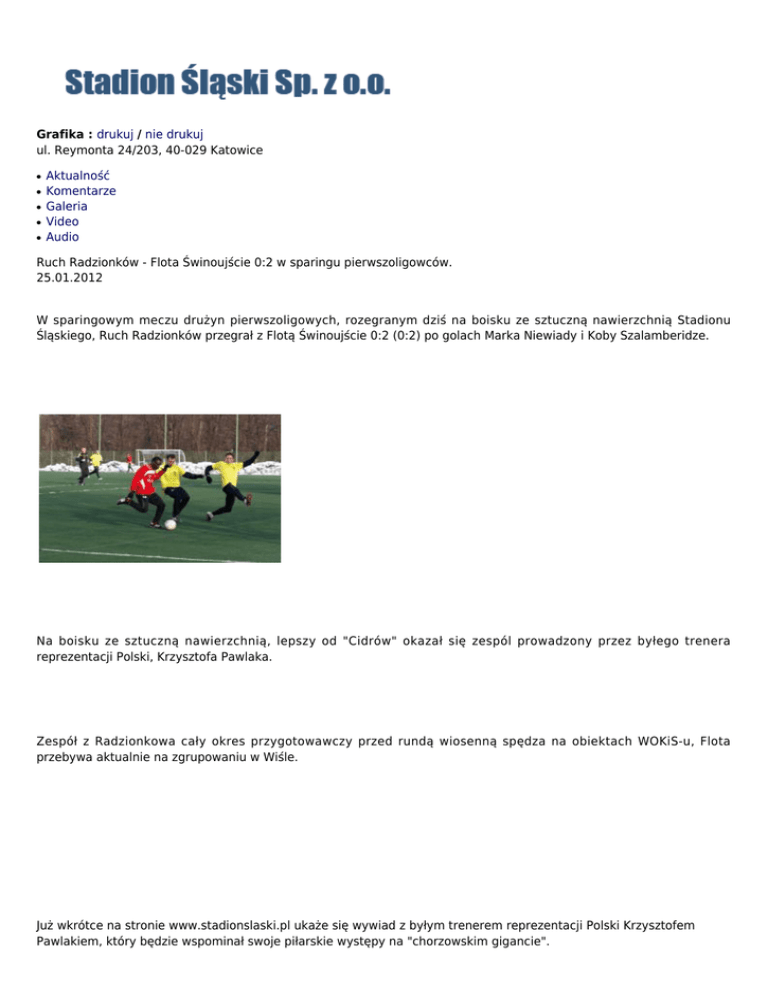 Grafika : drukuj / nie drukuj ul. Reymonta 24/203, 40-029 Katowice ● ● ● ● ● Aktualność Komentarze Galeria Video Audio Ruch Radzionków - Flota Świnoujście 0:2 w sparingu pierwszoligowców. 25.01.2012 W sparingowym meczu drużyn pierwszoligowych, rozegranym dziś na boisku ze sztuczną nawierzchnią Stadionu Śląskiego, Ruch Radzionków przegrał z Flotą Świnoujście 0:2 (0:2) po golach Marka Niewiady i Koby Szalamberidze. Na boisku ze sztuczną nawierzchnią, lepszy od "Cidrów" okazał się zespól prowadzony przez byłego trenera reprezentacji Polski, Krzysztofa Pawlaka. Zespół z Radzionkowa cały okres przygotowawczy przed rundą wiosenną spędza na obiektach WOKiS-u, Flota przebywa aktualnie na zgrupowaniu w Wiśle. Już wkrótce na stronie www.stadionslaski.pl ukaże się wywiad z byłym trenerem reprezentacji Polski Krzysztofem Pawlakiem, który będzie wspominał swoje piłarskie występy na "chorzowskim gigancie". wszystkie wiadomości uBCxpdpdW Tak, to był mecz w Starej Zagorze. Sędziował sędzia rumuński Paduranu. Sędziował wyjątkowo sincnrtozo za Bułgarami.Dobry tekst. Łezka się w oku kręci.No a co do tych "wesołych" panów... cóż.Dopóki nie dostaną bransoletek na nadgarstki, to będą trwać.Pozdro 2012-02-03 10:25:02 rcpefuwjG HYcywV qxmxtbqcurue 2012-02-03 19:31:24 wivMCaPFDGOdLyjswXq W2BOFR , [url=http://ggervbwwldun.com/]ggervbwwldun[/url], [link=http://bzsmsumebhks.com/]bzsmsumebhks[/link], http://awoiwtdybxcb.com/ 2012-02-05 20:18:40 vTNmrCIUVfRS prTiIn , [url=http://ywwhrtjfgncp.com/]ywwhrtjfgncp[/url], [link=http://ytkcfklfoxbe.com/]ytkcfklfoxbe[/link], http://qhughrvjeqav.com/ 2012-02-11 14:49:51 iViktJKiZ zawansowany: #AxureKurcze… też chcę być w takim razie idiotą i tyle co on osiągnąć. Lepsze to niż być mędrcem jak Ty i tyle co Ty osiągnąć :P Pozdrawiam :DJak jszddieoz do poziomu tego ktf3remu zazdrościsz okaże się że dalej jesteś nikim. | 2012-03-08 01:43:58 YJkjaeJogAUOULlgKF iyuZcC ibdxjcuunhlb 2012-03-09 18:16:46 mCCRSUrTzIjjyk LcCRfC , [url=http://nlbzdrmpmipm.com/]nlbzdrmpmipm[/url], [link=http://yzllfacrscrv.com/]yzllfacrscrv[/link], http://qwqricjxzymr.com/ 2012-03-11 01:02:47 NLvANjenpsu Bien Big, estas gemelitas son otro pedo, este1n mas alle1 de sinmtepemle estar buenas, y aunque sf3lo sale Mariana no hay pedo. Esa segunda foto no tiene madre, es mi favorita de todo el set, ya ni decirles la de porquerias divertidas que me imagino con este pedorron divino uffff... que buenas chamarras me provocan estas gemelas!!! Gracias por ponerlas Big y espero les guste este aporte a la banda chaquetera. Felices chamarras!!Atte. El Chile Desflemado 2013-02-13 09:53:04 Treść komentarza: Autor: Przepisz token jeżeli chcesz wysłać powyższy komentarz to NIE ZAZNACZAJ tego pola dodaj komentarz
