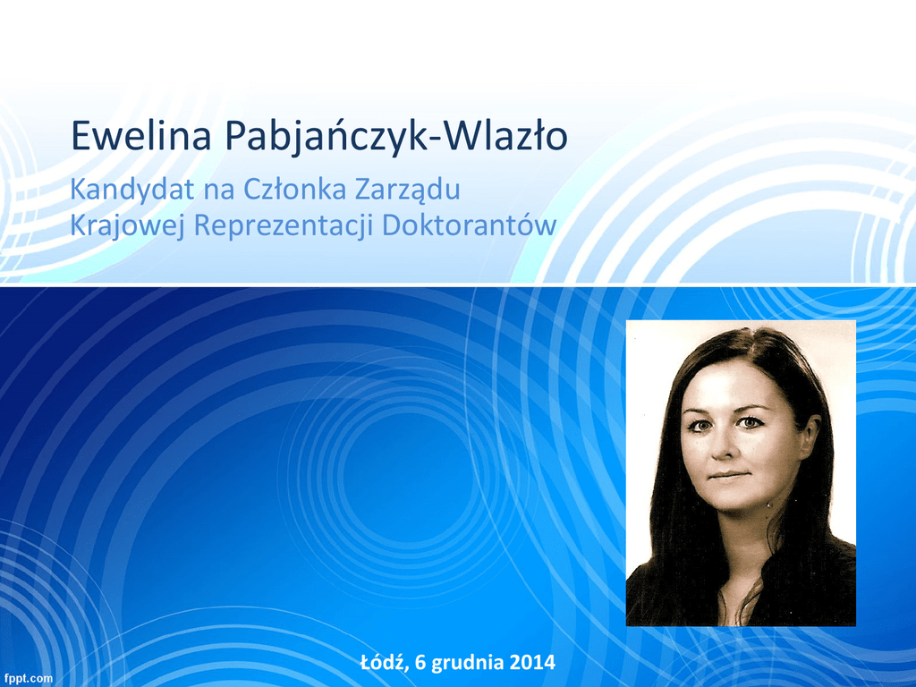 Ewelina Pabjańczyk-Wlazło Kandydat na Członka Zarządu Krajowej Reprezentacji Doktorantów Łódź, 6 grudnia 2014 Wykształcenie • Studia • Biotechnologia, BiNoŻ, Politechnika Łódzka • Biomedical Engineering, IFE, Politechnika Łódzka • International Business Management – L’INSEEC Alpes-Savoie Business School, Francja • Doktorat • PŁ, Wydział TMiWT zakres: biomateriały włókniste i porowate, biopolimery do zastosowań medycznych • Zainteresowania • UŁ, Wydział Zarządzania zakres: komercjalizacja wiedzy w sektorze life science Doświadczenie 1. Działalność w SS PŁ i SD PŁ 2. Stowarzyszenie Boost Biotech Polska – członek założyciel, Przewodnicząca Komisji Rewizyjnej 3. Konkurs Three Minute Thesis – koordynator 4. Członek komitetu organizacyjnego wielu konferencji: 1. 2. 3. 4. Jak założyć Biobiznes…? Mikro, Nano i co dalej? MedTex 2015 ….. Funkcje: kontakt z mediami, sponsorzy, patronaty 5. Wyjazdy zagraniczne: Niemcy, Francja, Japonia Proponowane działania 1. Rzecznik Prasowy KRD • Baza kontaktów – media • Prezentacja inicjatyw i stanowisk środowiska doktorantów • Koordynacja strony w zakresie PR Proponowane działania 2. Współpraca międzynarodowa • Problemy • Konkursy pod konkretny projekt • Wieloletnie kontrakty • Brak informacji na uczelniach… • Brak regulacji prawnych…. • Nierówny dostęp dla wszystkich doktorantów System umów wielostronnych Proponowane działania System umów wielostronnych • • • • • • FRP, Eurodoc Oferty i zapytania Wieloletnie kontrakty Brak informacji na uczelniach… Brak regulacji prawnych…. Nierówny dostęp dla wszystkich doktorantów Dziękuję za uwagę Kandydat na Członka Zarządu Krajowej Reprezentacji Doktorantów [email protected] +48 501 229 301 Łódź, 6 grudnia 2014