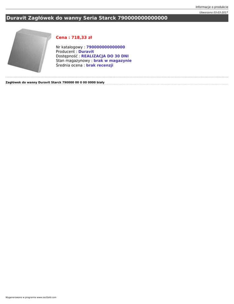 Informacje o produkcie Utworzono 03-03-2017 Duravit Zagłówek do wanny Seria Starck 790000000000000 Cena : 718,33 zł Nr katalogowy : 790000000000000 Producent : Duravit Dostępność : REALIZACJA DO 30 DNI Stan magazynowy : brak w magazynie Średnia ocena : brak recenzji Zagłówek do wanny Duravit Starck 790000 00 0 00 0000 biały Wygenerowano w programie www.oscGold.com