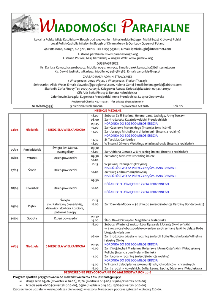 Wiadomości Parafialne - Lokalna Polska Misja Katolicka w Slough