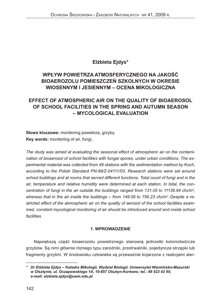 wpływ powietrza atmosferycznego na jakość bioaerozolu