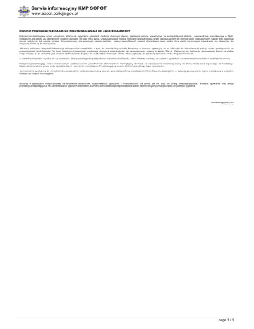 Serwis informacyjny KMP SOPOT www.sopot.policja.gov.pl OSZUŚCI POWOŁUJĄC SIĘ NA URZĄD MIASTA NAKŁANIAJĄ DO ZAŁOŻENIA ANTENY Policjanci przestrzegają przed oszustami, którzy na sopockich osiedlach osobom starszym oferują założenie anteny telewizyjnej za kwotę kilkuset złotych i wprowadzają mieszkańców w błąd, mówiąc im, że opłatę za abonament, osobom powyżej 70-tego roku życia, ureguluje urząd miasta. Policjanci przestrzegają przed wpuszczaniem do domów osób nieznajomych, nawet jeśli powołują się na instytucję lub ważną sprawę. Przypominamy, dla własnego bezpieczeństwa, należy zweryfikować powód, dla którego obca osoba chce wejść do naszego mieszkania, np. dzwoniąc do instytucji, która ją do nas wysłała. Wczoraj policjanci otrzymali informację od sopockich urzędników o tym, że mieszkańcy osiedla Brodwino w Sopocie zgłaszają, że od kilku dni do ich mieszkań pukają osoby podające się za przedstawicieli (instalatorów TV) firmy instalującej telewizję i nakłaniają starszych mieszkańców do zamontowania anteny za kwotę 500 zł. Deklarują też, że koszty abonamentu bierze na siebie urząd miasta, bo to rzekomo jest prezent od Prezydenta Sopotu dla osób, które ukończyły 70 lat. Obiecują także, że załatwią zerwanie umów długoterminowych. Z ustaleń policjantów wynika, że są to oszuści. Ofiarą przestępców padł jeden z mieszkańców Sopotu, który niestety uwierzył oszustom i zgodził się na zamontowanie anteny i podpisanie umowy. Policjanci przestrzegają przed nierozważnym podpisywaniem jakichkolwiek dokumentów. Pamiętajmy również, że wpuszczenie nieznanej osoby do domu może stać się okazją do kradzieży. Najbardziej narażoną grupą osób są ludzie starsi i samotnie mieszkający. Przestrzegajmy swoich bliskich przed tego typu oszustwami. Jednocześnie apelujemy do mieszkańców, szczególnie osób starszych, aby zawsze sprawdzały ofertę przedstawicieli handlowych, szczególnie w sytuacji powoływania się na współpracę z urzędem miasta czy innymi instytucjami. Wczoraj w spółdzielni mieszkaniowej na Brodwinie dzielnicowi przeprowadzili spotkanie z mieszkańcami na temat jak nie stać się ofiarą złodzieja/oszusta. profilaktyczna polegająca na zamieszczaniu ogłoszeń w blokach, kamienicach zostanie przeprowadzona przez dzielnicowych już na początku przyszłego tygodnia. Kolejne spotkania oraz akcja Data publikacji:2016-07-01 oficer prasowy page 1 / 1 Powered by TCPDF (www.tcpdf.org)