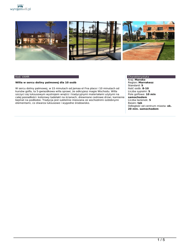 Kod: VAMR Charakterystyka Willa w sercu doliny palmowej dla 10