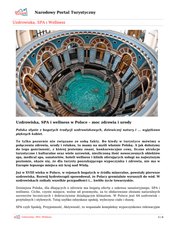 Narodowy Portal Turystyczny Uzdrowiska, SPA i Wellness Uzdrowiska, SPA i wellness w Polsce – moc zdrowia i urody Polska słynie z bogatych tradycji uzdrowiskowych, dziewiczej natury i ... wyjątkowo pięknych kobiet. To tylko pozornie nie związane ze sobą fakty. Bo kiedy w turystyce mówimy o połączeniu zdrowia, urody i relaksu, to mamy na myśli właśnie Polskę. A jak dołożymy do tego gościnność, z której jesteśmy znani, konkurencyjne ceny, liczne atrakcje turystyczne i kulturalne oraz wiele uzrowisk, niezliczoną ilość nowoczesnych obiektów spa, medical spa, sanatoriów, hoteli wellness i klinik oferujących usługi na najwyższym poziomie, okaże się, że dla turysty poszukującego wypoczynku i zdrowia, nie ma w Europie lepszego miejsca niż kraj nad Wisłą. Już w XVIII wieku w Polsce, w rejonach bogatych w źródła mineralne, powstały pierwsze uzdrowiska. Rozwój hydroterapii spowodował, że Polacy gremialnie wyruszyli do wód. W uzdrowiskach znikały wszelkie przypadłości i... kwitło życie towarzyskie. Dzisiejsza Polska, dla dbających o zdrowie ma bogatą ofertę z zakresu sanatoryjnego, SPA i wellness. Ciche, czyste miejsce, wolne od przemysłu, za to obdarowane złożami naturalnych surowców leczniczych i dobroczynnie działającym klimatem. W Polsce jest 44 uzdrowisk – przytulnych i stylowych. Tutaj szybko odzyskasz spokój, wyleczysz ciało i duszę. SPA czyli Spokój, Przyjemność, Aktywność, to wspaniałe kompleksy wypoczynkowo rekreacyjne Uzdrowiska, SPA i Wellness 1/4 Narodowy Portal Turystyczny Uzdrowiska, SPA i Wellness niosące radość i odpoczynek oraz kojące ciało i duszę. Wellness to świadome działania w celu osiągnięcia dobrostanu zdrowia i samopoczucia. Sanatoria natomiast, których w Polsce nie brakuje, to zakłady medyczne wykorzystujące walory rekreacyjne, przyrodnicze i naturalne w celu poprawy kondycji organizmu człowieka. W Polsce jest ponad 200 ośrodków SPA. Z ich okien rozciągają się widoki na fale Bałtyku, tatrzańskie Czerwone Wierchy albo morenowe wzgórza Suwalszczyzny. Oprócz długiej listy zabiegów pielęgnacyjnych i zdrowotnych, ośrodki SPA oferują doskonałą, często dietetyczną kuchnię, zapewniają noclegi w wysmakowanych wnętrzach i dodatkowe atrakcje. Wyjątkowe miejsca otrzymują certyfikaty jakości. Duszniki Zdrój , Polanica Zdrój, Krynica Zdrój, Augustów, Sopot – miejsca o uzdrawiającej sile znajdziesz w każdym zakątku Polski. Większość z nich specjalizuje w leczeniu wybranych chorób. Nałęczów dba o sercowców, Konstancin koi zszargane szybkim życiem nerwy, Lądek Zdrój i Połczyn Zdrój pomagają pozbyć się kobiecych dolegliwości, a Rabka Zdrój skupia się na leczeniu dzieci. Ale są też miejsca wszechstronne, jak rozpieszczane przez słońce Busko Zdrój czy Kołobrzeg, który swą leczniczą moc zawdzięcza Bałtykowi, działającemu jak olbrzymi, naturalny inhalator. Klimatoterapia, balneoterapia, talassoterapia – wybór metod leczenia w uzdrowiskach jest ogromny. Chcesz pospacerować ukwieconym deptakiem w Ciechocinku i powdychać słone Uzdrowiska, SPA i Wellness 2/4 Narodowy Portal Turystyczny Uzdrowiska, SPA i Wellness powietrze wokół największych w Europie tężni? Czy wolisz kąpiele perełkowe w bajecznym wnętrzu zabytkowego sanatorium w Lądku Zdroju? A może dasz się namówić na łyk łatwopalnej „Bełkotki" z Iwonicza Zdroju albo borowinowe okłady w Gołdapi? Uzdrowiska to nie tylko pięknie położone sanatoria, zabiegi, spacery i życie kulturalne. Polskie zdroje są naszpikowane historycznymi pamiątkami – po królach, politykach, pisarzach i artystach. Król Jan III Sobieski raczył się siarkową wodą z Horyńca Zdroju, Ada Sari leczyła w Szczawnicy gardło, a pisarz Stefan Żeromski w Nałęczowie napisał „Dzieje grzechu". Wyprawy do wód były kiedyś obowiązującym punktem w corocznym planie poprawy zdrowia i towarzyskich spotkań. Najpełniejszą ofertę mają luksusowe, hotelowe resorty SPA m.in. Jelenia Struga SPA Resort niedaleko Kowar proponuje inhalacje radonowe w sztolniach dawnej kopalni uranu. W Villi Park w Ciechocinku można ochłonąć w kriokomorze, a w Wierchomla Ski& SPA Resort prosto ze stoku narciarskiego wjechać na słoneczną łąkę! Resorty SPA zapewniają również fachową opiekę medyczną (chirurgów, dermatologów, kosmetologów, stomatologów oraz dietetyków). Mniejsze ośrodki wabią wyjątkową, intymną atmosferą. W położonym na zboczu Czantorii Bielenda SPA można podziwiać malowniczy krajobraz gór. Ukryta w sosnowym lesie w Pobierowie Wy&SPA kusi widokiem na Bałtyk, a w SPA Kanebo International w Kazimierzu Dolnym masaż shiatsu robi się przy zapachu orientalnych świec w kolorze sakura, czyli kwitnącej wiśni. Dla tych, którzy nie mają czasu, powstały miejskie Day SPA. W Relax Care w sercu Krakowa Uzdrowiska, SPA i Wellness 3/4 Narodowy Portal Turystyczny Uzdrowiska, SPA i Wellness goście korzystają z kąpieli siarkowych, w warszawskim Instytucie Zdrowia i Urody Sharley poznają uroki orientalnych masaży, a we wrocławskim Tołpa SPA mogą zakosztować zabiegów borowinowych. Nie ma co zwlekać, ruszajmy do wód! Uzdrowiska, SPA i Wellness 4/4