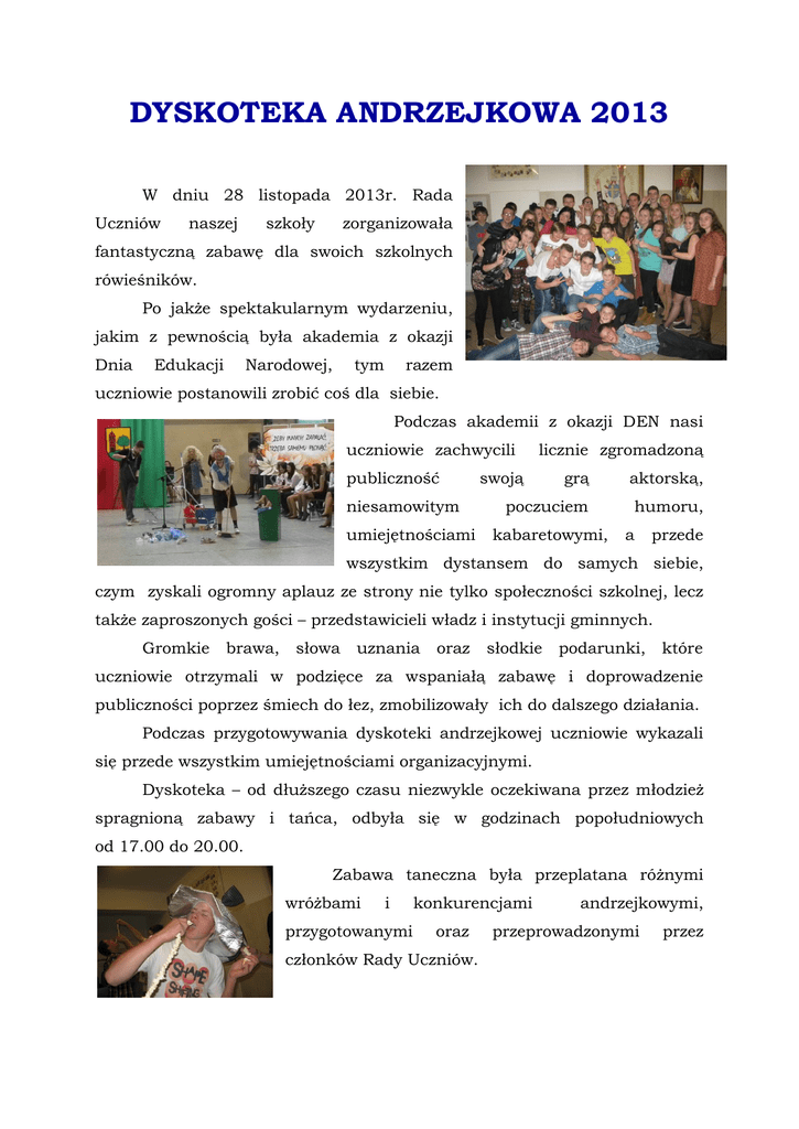 dyskoteka andrzejkowa 2013 - Gimnazjum im. Jana Pawła II w