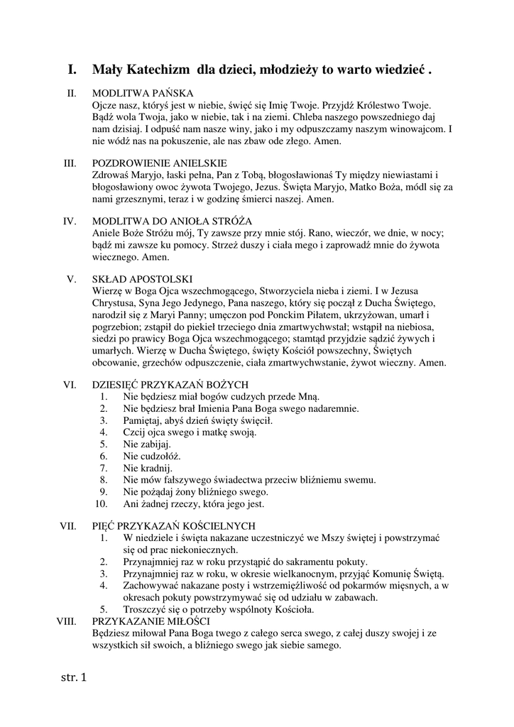 I. Mały Katechizm dla dzieci, młodzieży to warto wiedzieć .