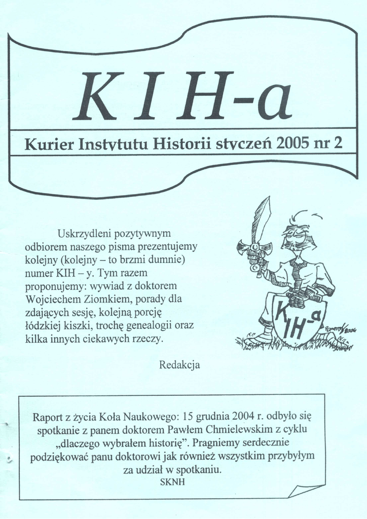W oparach dymu i megabajtów. 7 grudnia 2004 r. przeprowadziłem wywiad spotkanie z doktorem Wojciechem Ziomkiem w celu uzyskania informacji na temat otwartej miesiąc wcześniej naukowej pracowni internetowej. Korzystając z tego, że Pan doktor znalazł dla mnie czas postanowiłem również dowiedzieć się czegoś o mającej powstać ogólnodostępnej pracowni komputerowej. Oto zapis mojej rozmowy: Bruno Kamiński: Kiedy można się spodziewać oddania do użytku otwartej pracowni internetowej? Dlaczego nie jest jeszcze otwarta? Dr Wojciech Ziomek: Otwarcie planujemy na koniec tego tygodnia, najdalej na początku przyszłego (tj. 11-14.12.2004- przyp. B. K.). Problem stanowią nie skręcone stoły pod komputery. Odpowiedzialni za to ludzie opóźniają wykonanie zadania. Dlatego właśnie wciąż jeszcze nie możemy udostępnić pracownię dla studentów. Jaki sprzęt mają do dyspozycji studenci korzystający z naukowej pracownie internetowej? Są to bardzo dobre, standardowo wyposażone PC-ty o pamięci operacyjnej 256 RAM DDR, procesory 1700 mhz Athlon, twarde dyski o pojemności 40 GB. Szybkość przesyłu danych w Internecie wynosi 250 kb/h. Dlaczego nasz Instytut jako jeden z niewielu nie posiada własnej strony internetowej? Kiedy możemy się niej spodziewać? Problem stanowi brak czasu oraz kwestia serwera. Do tego potrzebna jest zgoda centrum komputerowego Uniwersytetu oraz dostęp do domeny uni.lodz. Co do strony internetowej to takową posiada na naszym wydziale jedynie Instytut Filozofii. Co będzie udostępnione w otwartej pracowni internetowej? Ile stanowisk, drukarek itp.? Planujemy stworzenie ok. 20 stanowisk. Udostępnimy również szybką drukarkę laserową o formacie A3. Będą również 3 skanery, w tym jeden do slajdów. Otwarta pracownia będzie za rok funkcjonować w oparciu o system Linux. 2 Do tej pory zakupiliśmy również dwa duże serwery, które czekają na uruchomienie. Czekamy również na szybsze łącze internetowe, być może światłowodowe, a nawet laserowe. Czy zawsze trzeba będzie przedzierać się do pracowni komputerowej przez salę 47 ? Zdecydowanie nie. Wraz z oddaniem nowo powstającego budynku do pracowni prowadzi będzie nowe wejście. Znajdą się tam 3 sale komputerowe: jedna sala naukowa, jedna audiowizualna oraz pracownia otwarta. Chcę też nadmienić o planowanym projekcie naukowym. Planujemy zaangażować studentów do skanowania trudno dostępnych podręczników i innych książek. Chodzi przede wszystkim o tytuły występujące w bibliotekach w pojedynczych egzemplarzach. Po zeskanowaniu dokumenty tekstowe zapisane w formacie PDF byłyby umieszczane w bazie danych na serwerze Instytutu, gdzie byłyby łatwo osiągalne. P.s. Po raz kolejny okazuje się, że wyższa technologia przegrywa z niedostatkami technologii z poziomu śrubokręta i klucza francuskiego. Mamy jednak nadzieję, że wkrótce uda się jednak doprowadzić do inauguracji działalności otwartej pracowni internetowej. Bruno Kamiński [email protected] GENEALOGICZNIE... Nauki pomocnicze historii zajmują wśród dyscyplin historycznych miejsce dość wyjątkowe. Wąsko wyspecjalizowane, a jednak uniwersalne. Niektóre bardzo hermetyczne i o technicznym niemal charakterze, inne są bardziej sztuką niż rzemiosłem. Łączą różne nauki, są wspólne wszystkim prawie dyscyplinom historii. Wyemancypowane trochę na przekór swej ogólnej nazwie, od dawna wiodą samodzielny żywot, wypracowawszy własne metody i znalazłszy nowe zastosowania. Coraz bardziej precyzyjne, a jednocześnie nadal praktyczne. Niewątpliwie, wbrew podnoszonym niegdyś obawom, w dalszym ciągu rozwijają się – najprostszym dowodem jest przecież znaczne poszerzenie listy N. P. H. w ostatnich dekadach. Do kilkunastu klasycznych dodaje się dziesiątki pomniejszych (nie zawsze zresztą słusznie – bo czy naukowa analiza pocztówek może urastać do miana dyscypliny naukowej ?). 3 Warto w każdym razie widzieć w naukach pomocniczych historii wiele więcej, niż tylko suchy zestaw definicji i praktycznych dyrektyw stosowania materiału historycznego. Bez wątpienia zaś jedną z najciekawszych i najchętniej uprawianych spośród N. P. H. jest genealogia, w warstwie praktycznej znana od starożytności, a obudowywana teorią i metodą (z grubsza rzecz biorąc) od XVIII w. Ma wiele obliczy, w przeszłości służyła różnym, nie zawsze chwalebnym, celom. Ale te zagrożenia (wyjąwszy może ludzką próżność, która nierzadko prowadzi do upiększających i uwznioślających zafałszowań przeszłości) nie stanowią już, miejmy nadzieję, większego problemu. *** Postawmy sobie pytanie, dlaczego pierwszy monarcha konstytuującej się niepodległej Belgii w rok po swym zaprzysiężeniu poślubił córkę Ludwika Filipa, Ludwikę Marię? Jeżeli odpowiemy, szczegółowo opisując ówczesne dyplomatyczne zależności i polityczne niuanse, to mamy oczywiście rację, ale nie do końca. Jeśli natomiast w dodatku dostrzeżemy istnienie nieprzerwanej linii sukcesyjnej, łączącej wybrankę z ostatnimi władcami Burgundii, a poprzez nich z książętami większości średniowiecznych państw południowych Niderlandów (Brabancji, Flandrii, Namur, Hainaut itp. itd.), wówczas uzyskamy nową, odrębną płaszczyznę interpretacji – kiedyś może nadużywaną, dziś z pewnością niedocenianą. Dla czasów od XVIII w. wstecz waga czynnika genealogicznego będzie bezdyskusyjnie większa. Mając świadomość, że po śmierci Elżbiety II dynastię Wettinów na brytyjskim (i nie tylko) tronie zastąpią Oldenburgowie (jak wraz ze śmiercią Wiktorii Wettinowie zastąpili Welfów), nie jesteśmy może posiadaczami klucza do interpretacji dzisiejszej geopolitycznej rzeczywistości, ale zbliżamy się o jeden niemały wcale kroczek do uchwycenia jednej z tych subtelnych nici, które łączą przeszłość z teraźniejszością; nici, które nie tak łatwo uchwycić w gwałtownie zmieniającej si