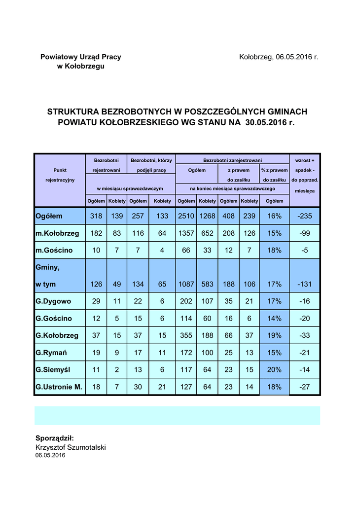 Gminy kwiecień 2016 - Powiatowy Urząd Pracy w Kołobrzegu