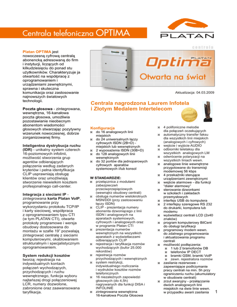 Integracja z sieciami IP zintegrowana karta Platan VoIP,