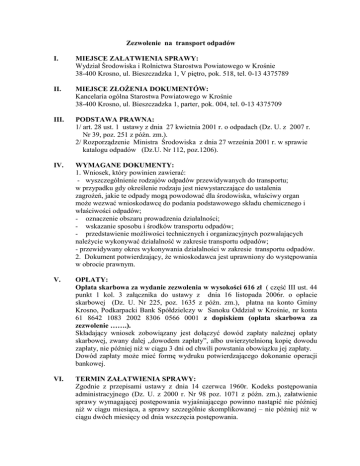 Zezwolenie na transport odpadów I. MIEJSCE ZAŁATWIENIA