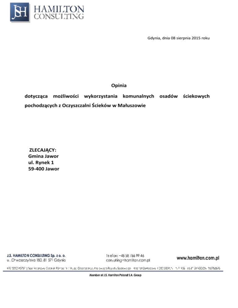 Opinia dotycząca możliwości wykorzystania komunalnych osadów