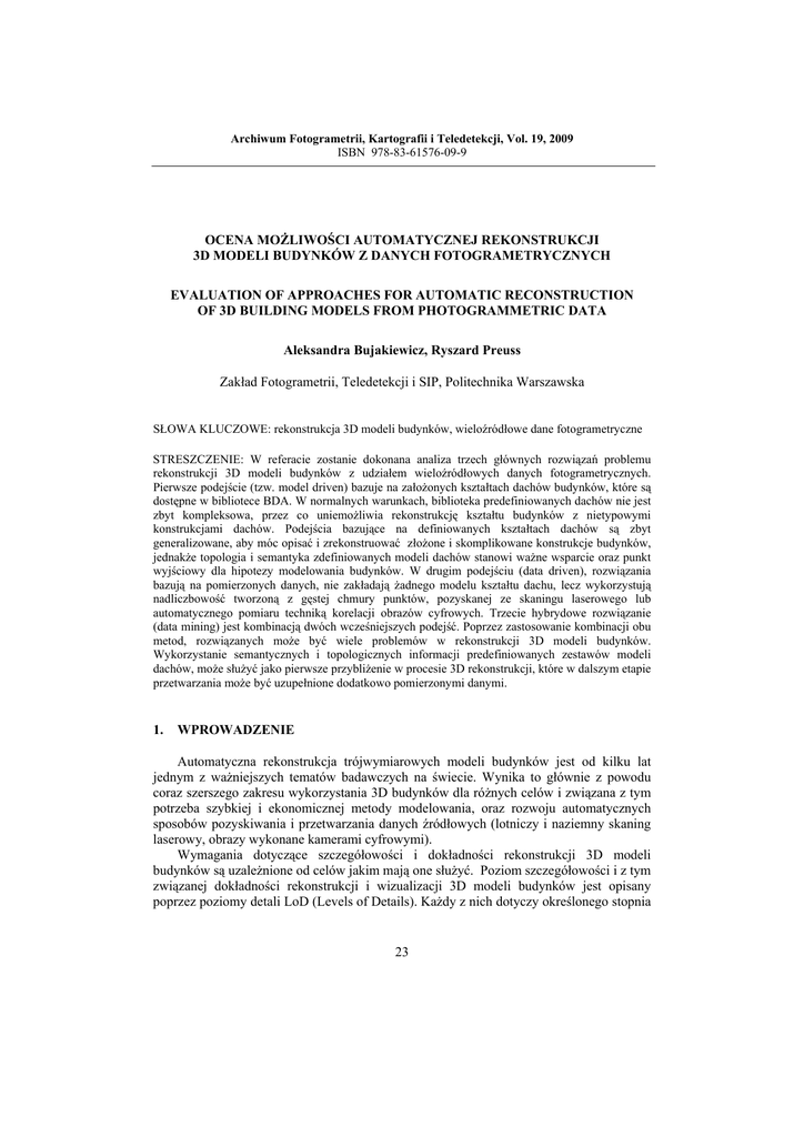 23 OCENA MOŻLIWOŚCI AUTOMATYCZNEJ REKONSTRUKCJI 3D