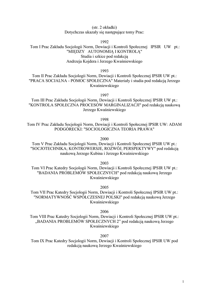 Dotychczas ukazały się następujące tomy - IPSiR