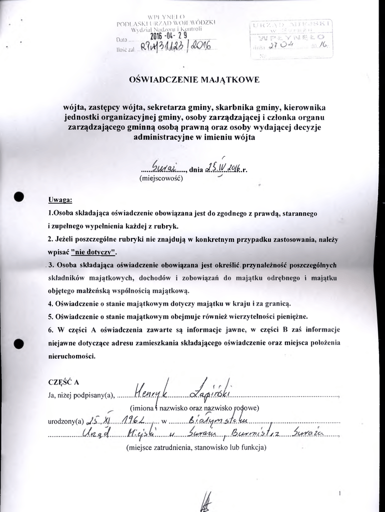 niejawne dotyczące adresu zamieszkania składającego oświadczenie oraz miejsca położenia