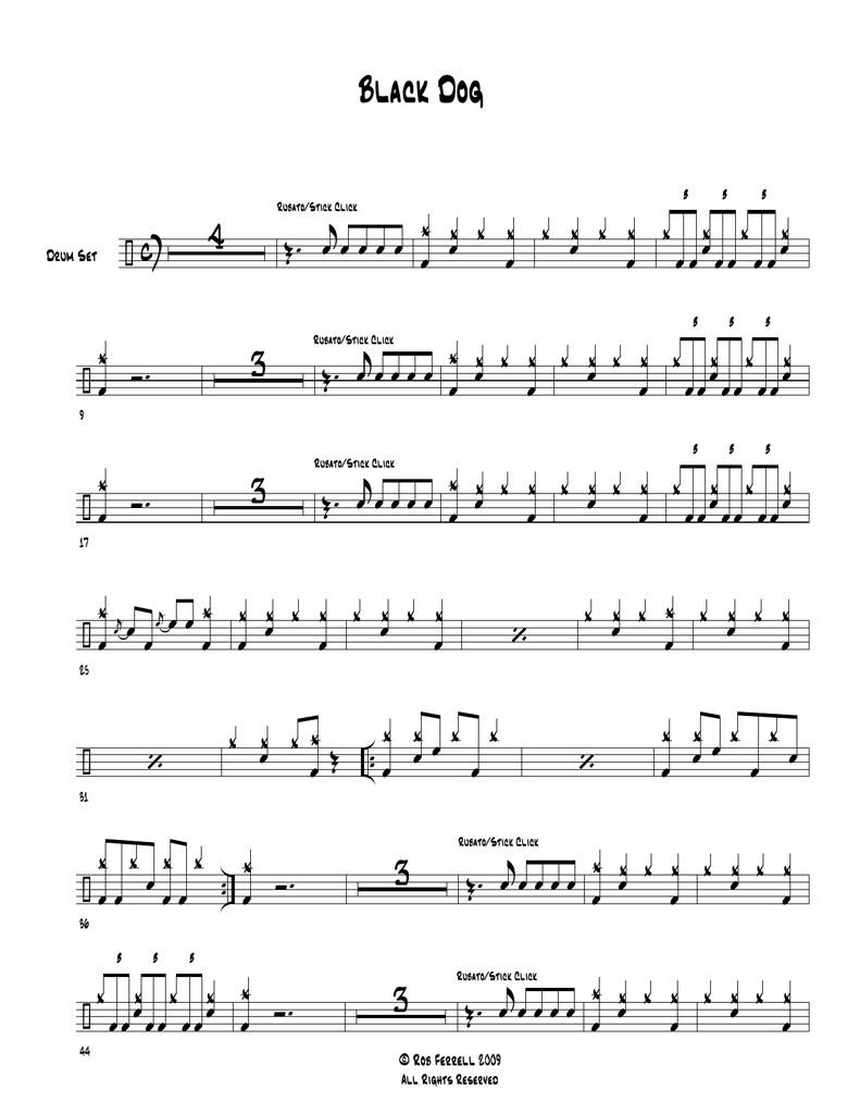 Black Dog 4 ÷c Drum Set j y y y y y y y y y y y y œ œ œ œ œ œ œ œ œ . Œ œ œ œ œœ œœ œœ y ÷ œ Ó. 3 y ÷ œ Ó. 3 9 17 3 Rubato/Stick Click j y y y y y y y y y y y y œ Œ. œ œ œ œ œ œ œ œ œ œœœœœ œœœ 3 31 y y y y œ œŒ y y y y y ÷ œ œ œ œ œ .. œ Ó . 36 3 3 3 y y y y ÷ œ œ œ œ œ œ œ œ œ Ó. y 44 3 3 j y y y y y y y y y y y y œ œ œ œ œ œ œ œ œ . Œ œ œ œ œœ œœ œœ 3 Rubato/Stick Click ‘ 25 ‘ 3 Rubato/Stick Click y y y y y y y y y y j œ ÷ œ œj œ œ œ œ œ œ œ œ œ œ ÷ 3 y y y y .. œ œ œ œ 3 3 3 3 y y y y y y y y œ œ œ œ ‘ y y y y œ œ œ œ œ j y y y y y y y y œ œ œ œ œ œ . Œ œ œ œ œ Rubato/Stick Click j y y y y y y y y œ Œ. œ œ œ œ œ œ œ œ œ Rubato/Stick Click © Rob Ferrell 2009 All Rights Reserved 3 3 6 3 y œy y œy y ÷ œ œ œ œ œ œ œ Ó. j j y 54 ‰ œ œ œ œ œ œ œ ‰ œ c .. œy y y œ œ œ œœ œ Rubato/Stick Click j 1, 2, 3 y y. j 3 y y y y y y y. ÷ œ œ œ œ œ œ œ œ œ . œ Œ . œ . ‰ œ .. 4 Œ . 52 62 ÷ 67 ÷ 75 ÷ 83 3 3 3 y ÷ œ Ó. 110 3 3 j y y y y y y y y y y y y y œ œ œ œ œ œ œ œ œ Œ. œ œ œ œ œ œ œ œ œ œ Ó. 3 3 3 Rubato/Stick Click j y y y y y y y y y y y y y j œj œ œ y œ œ œ œ œ œ œ œœœœœ œœœ œ œ œ œ Œ. œ œ œ œ 3 3 3 Rubato/Stick Click 3 3 y y y y y y y y œ œ œ œ ‘ y y y y y œy y y .. œ œ ÷ Œ œ œ œ 102 Ó. j y y y y y y y y y y y y y œ Œ. œ œ œ œ œ œ œ œ œ œ œ œ œ œ œ œ œ œ Ó. 3 91 y ÷ œ Ó. y c œ Rubato/Stick Click y y y y y y y y œ ÷œ œ œ œ 97 y. œ. ‘ ‘ y y y y y y y y œœ œ œ . œ œ œœ œœ . j y y y y y y y y y y y y œ œ œ œ œ œ . Œ œ œ œ œ œœœ œ œœœ 3 3 Rubato/Stick Click j y y y y y y y y y y y y œ œ œ œ œ œ . Œ œ œ œ œ œœœœœ œœœ 3 Rubato/Stick Click -2- 3 3 5 y ÷ œ Ó. 118 y y ÷œ œ œ 127 y œ y Ó. j j y y y y j œ œ 5 ‰œ 4œ ‰ œ œ ‰ œ c .. œ œ œ œ œ Rubato/Stick Click œ y. œ. y y œ œ œ -3- j y œ Œ. y. œ. j ‰ œ ..