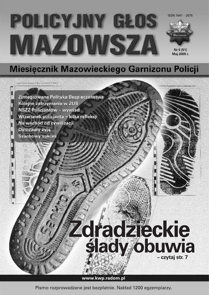 Foto: KPP Gostynin AKTUALNOŚCI Siedlce, ul. Kilińskiego, 16.05.2005, godz. 15:00 – Dwaj sprawcy pobili 15 latka i usiłowali ukraść jego plecak, lecz zamierzonego celu nie osiągnęli ze względu na zdecydowany opór pokrzywdzonego. Po zgłoszeniu przestępstwa policjanci zatrzymali dwóch 17 letnich sprawców, obaj są mieszkańcami Siedlec. Lipa, powiat przasnyski, 11.05.2005, godz. 11:30 – Pewien mężczyzna powiadomił policję, że dwaj kłusownicy upolowali w lesie sarnę rogacza. W wyniku podjętych przez policjantów czynności zatrzymani zostali obaj kłusownicy (29 i 28 l.). Ujawniono przy nich również nielegalnie posiadaną broń myśliwską – dubeltówkę dwulufową kaliber 16 mm. Broń została zabezpieczona, a kłusownicy osadzeni w policyjnym areszcie. Radom, ul. Wyścigowa, 10.05.2005 – Policjanci z Wydziału Kryminalnego KWP, wspólnie z policjantami KMP w Radomiu, przeszukali pomieszczenia mieszkalne i gospodarcze należące do 52 letniej kobiety, w wyniku czego odnaleziono i zabezpieczono urządzenia wyposażenia gabinetu protetyki zębowej pochodzące z włamania do pracowni dentystycznej w Radomiu. Wartość odzyskanych materiałów i wyposażenia wynosi około 25 tys. zł. Radom, ul. Niedziałkowskiego, 07.05.2005, godz. 23:34 – W wyniku pożaru w jednym z bloków spaliła się kabina windy. Do szpitala przewieziono 6 osób, w tym dwuletnie dziecko z podejrzeniem zatrucia tlenkiem węgla. Prawdopodobną przyczyną zdarzenia było podpalenie. Borsuki Kolonia, powiat pułtuski, 2.05.2005, godz. 19:50 – 22-letni miesz- kaniec Pułtuska podczas rodzinnego spotkania zdetonował skonstruowane przez siebie urządzenie wybuchowe. Była to prawdopodobnie żeliwna rura hydrauliczna wypełniona materiałem wybuchowym. Na miejscu zginął mężczyzna – sprawca eksplozji, oraz jego 45-letnia matka. W wybuchu zostały ranne cztery osoby: dwaj mężczyźni (29 i 19 l.) oraz dwójka dzieci (2 i 7 l.). Wszyscy mają poważne rany szarpane nóg. Pułtusk, ul. Traugutta, 01.05.2005, godz. 5:30 – Dwaj sprawcy na stacji benzynowej wybili szybę w drzwiach i ukradli samochód osobowy Fiat 126p. Gdy właściciel samochodu ujrzał swój odjeżdżający samochód usiłował go odzyskać, lecz sprawcy zagrozili mu pobiciem. Po powiadomieniu policjanci zatrzymali sprawcę (31 lat) kradzieży i odzyskali skradziony samochód. Radom, ul. Malczewskiego, 24.04.2005, godz. 13:34 – Dyżurny KMP w Radomiu został telefonicznie powiadomiony przez nieznanego mężczyznę o ładunku wybuchowym podłożonym rzekomo w jednej z kamienic przy ul. Malczewskiego. Na miejsce skierowano jednostki policji, pogotowia ratunkowego, straży pożarnej oraz straży miejskiej. Ewakuowano mieszkańców sąsiednich budynków. Na miejsce wezwano także policyjnych pirotechników, którzy sprawdzili pakunek znaleziony w kamienicy. Okazało się, że w paczce były zawinięte kawałki papieru. Policjanci zatrzymali mężczyznę podejrzanego o ten fałszywy alarm. Zatrzymany to 24-letni mieszkaniec Radomia. POPO uczy Papierosy za pół miliona KPP w Ciechanowie realizuje Policyjny Program Edukacyjny „POPO”, który jest skierowany do dzieci klas pierwszych szkół podstawowych. Przystępując do wdrażania programu pozyskano sponsorów: Miejskie i Gminne Komisje Rozwiązywania Problemów Alkoholowych, które sfinansowały zakup maskotek dla dzieci. Za pośrednictwem Komendy Głównej Policji pozyskano z KWP w Gdańsku elementarze, które dzieci wykorzystują podczas prowadzonych zajęć. Podstawowym celem realizacji tego przedsięwzięcia jest uczenie dzieci bezpiecznego zachowania oraz kreowanie wizerunku Policji. (goź) 19 kwietnia przy ul. Szerokiej w Radomiu funkcjonariusze z Sekcji Patrolowo-Interwencyjnej radomskiej policji przeprowadzili kontrolę dwóch podejrzanych osób, które kręciły się przy zaparkowanym na ulicy samochodzie „mercedes sprinter”. Osobą dysponującą pojazdem i posiadającą dokumenty oraz kluczyki okazał się 42-letni mieszkaniec powiatu chełmskiego. Drugim z mężczyzn był 28letni mieszkaniec Radomia (wielokrotnie zatrzymywany za przestępstwa przeciwko życiu i mieniu - karany). Policjanci z Sekcji Kryminalnej KMP w Radomiu w części bagażowej samochodu ujawnili pudła kartonowe z ponad 45 tysiącami paczek papierosów bez wymaganych znaków akcyzy. Obaj mężczyźni zostali zatrzymani. Zgodnie z wcześniej wydanymi poleceniami, każdy meldunek z kraju o zatrzymaniu osób przewożących nielegalnie papierosy trafiał natychmiast do policjantów z Lublina ze specjalnej grupy powołanej w związku z włamaniem do magazynu Izby 2 Radom, Wiedeń, 09.05.2005 – Policjanci z Wydziału Kryminalnego KWP zs. w Radomiu ujawnili skradzioną w Wiedniu waltornię, instrument muzyczny firmy „Gebrueder Alexander” model 103, który kosztuje ponad 6 tys. euro, czyli około 26 tys zł. Dane o tej waltornii znalazły się w bazie danych rzeczy skradzionych Interpolu po kradzieży dokonanej kilka tygodni temu z samochodu w Wiedniu. Należała ona do muzyka z orkiestry filharmoników wiedeńskich. W związku ze sprawą zatrzymano dwóch mężczyzn z Radomia, którzy weszli w posiadanie tego rogu mając świadomość, że pochodzi z kradzieży i usiłowali go odsprzedać muzykowi z Radomia. Obecnie prowadzone są dalsze czynności we współpracy z policją austriacką Celnej w Chełmie i kradzieży papierosów za 4,5 mln zł. Tak było w tym przypadku. Już po południu była pewność, że papierosy znajdujące się w busie pochodzą z włamania. Jak się okazało wartość zabezpieczonego przez radomskich policjantów mienia to około 500 tys. zł. Pierwszemu z mężczyzn postawiono zarzut paserstwa, drugiemu udziału w kradzieży z włamaniem. Dalsze czynności w tej sprawie prowadzi KWP Lublin. (jeż) AKTUALNOŚCI Majowe zmagania Drużyny Publicznej Szkoły Podstawowej nr 6 w Radomiu i Publicznego Gimnazjum nr 2 w Otwocku wystąpią w Finale Krajowym XXVIII Ogólnop
