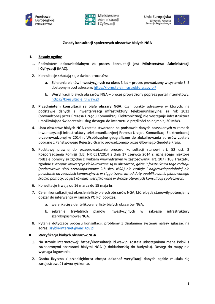 1 Zasady konsultacji społecznych obszarów białych NGA I. Zasady