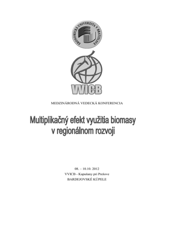 MEDZINÁRODNÁ VEDECKÁ KONFERENCIA 08. – 10.10. 2012 VVICB - Kapušany pri Prešove BARDEJOVSKÉ KÚPELE Táto publikácia, bola vytvorená realizáciou projektu „Nové technológie pre energeticky environmentálne a ekonomicky efektívne zhodnocovanie biomasy“ na základe podpory operačného programu Výskum a vývoj financovaného z Európskeho fondu regionálneho rozvoja. (Kód ITMS:26220220063) Publikácia neprešla jazykovou úpravou. Za obsah a jazykovú úroveň zodpovedajú autori príspevkov. Súčasťou publikácie je CD s prezentáciami, ktoré odzneli na konferencii. Výskumno-vývojové a informačné centrum bioenergie v Kapušanoch, Ekonomická univerzita v Bratislave. Všetky práva vyhradené. Žiadna časť tejto publikácie sa nesmie reprodukovať, vkladať do informačných systémov alebo inak rozširovať bez predchádzajúceho súhlasu. Vydalo: Vydavateľstvo EKONÓM Náklad: 50 výtlačkov Zameranie konferencie: 1) Rozvoj regiónov a pôdny potenciál a potenciál lesa 2) ONE a rozvoj malých a stredných podnikov 3) Inovácie 4) Ekonomické a spoločenské aspekty rozvoja regiónov Predseda medzinárodného vedeckého výboru: doc. Ing. Matej Polák, PhD. Medzinárodný vedecký výbor konferencie: Prof. Ing. Jozef Víglaský, Csc.-TU Zvolen, SK-BIOM, Prof. Ing. Ondrej Hronec, DrSc.-PU Prešov, Prof. Ing. Leonid Worobiov-ZAKDU-Szczecinu Dr. hab. Ing. Lukasz Poplawski-Uniwersytet Rolniczny Krakow Prof. Ing. Ján Gaduš, CSc.-SPU Nitra, Prof. Ing. Imrich Koštial, CSc.-TU Košice, Fakulta FBERG, Prof. Dr. Viktor V. Bunda, CSc.-Transcarpatian State University, Uzhorod, Ukraine, Doc. Ing. Arch. František Kurila, CSc.-Prešov Prof. Dr. hab. Bartosz Miczkiewicz-Zachodniopomorski Uniwersytet Technologiczny w Szczecinie Recenzenti: prof. Ing. Imrich Koštial, CSc., Technická univerzita v Košiciach prof. Ing. Jozef Víglaský, CSc., Technická univerzita vo Zvolene Ing. Pavol Porvaz, PhD., VU Agroekológie, Michalovce Ing. Arch. František Kurila, DrSc. Programový výbor: Ing. Alexander Bugyi, VVICB Kapušany, EU v Bratislave Ing. Daniela Inašová, VVICB Kapušany, EU v Bratislave Ing. Ivana Kolesárová, VVICB Kapušany, EU v Bratislave Ing. Adriana Vargová, VVICB Kapušany, EU v Bratislave Predhovor Relatívny význam poľnohospodárstva a lesného hospodárstva už desaťročia ustupuje. Tieto štrukturálne zmeny sa regionálne odrazili rôznorodo. V niektorých regiónoch industrializácia a cestovný ruch výrazne vyrovnali dôsledky agrárnych štrukturálnych zmien v iných ale nestačili s týmto vývojom udržať krok a došlo k ich významnému oslabeniu čo ho dôsledkom je nárast cestovania za prácou a vyľudňovanie najmä prihraničných oblastí severovýchodného Slovenska a k zníženiu hospodárskeho potenciálu regiónov. Rozličné štrukturálne a rozvojové problem vidieckych regiónov sú veľkou výzvou pre podporu regionálneho rozvoja v rámci programov EÚ. Jednou z možnosti je aj akčný program Európskej únie pre podporu rozvoja biomasy ako zdroja energie. Je to v rámci stratégie EÚ pre vyrovnávanie rozdielov medzi znevyhodnenými regiónmi Európy a bohatými regiónmi. V dňoch 8. – 10. 10. 2012 sa v Bardejovských kúpeľoch a v Kapušanoch stretli zástupcovia z oblasti praxe, vedy a výskumu, aby spoločne hľadali optimálne možnosti využitia biomasy na energetické účely. V pléne konferencie odznelo viacero vystúpení popredných odborníkov z Poľska, Ukrajiny, Českej republiky a zo Švédska, v ktorých rezonovali argumenty o multiplikačných efektoch z využitia biomasy pri výrobe energie a tepla pri zvyšovaní zamestnanosti, ako aj pri optimálnom využití pôdy s nízkym energetickým potenciálom, ktorej je v krajinách Východnej a Stednej Európy dostatok a ktorá leží ľadom. A práve jej alternatívne využitie na výrobu bioenergie by mohla aj v Slovenských podmienkach prispieť k podpore rozvoja regiónov Prešovského a Košického kraja, k ich trvalo udržateľnému rozvoju a k získaniu vedľajšieho zdroja príjmov farmárov a družstevných roľníkov. Súčasťou medzinárodnej vedeckej konferencie bola aj exkurzia v bioelektrárni BIOENERGY v Bardejove, ktorá vyrobí za1 hodinu 9,8 MWh elektriny a cca 10 MWh tepla, ktoré postačuje na vykurovanie celého mesta Bardejov. V rámci 2 dňa sa uskutočnil workshop vo Výskumno-vývojovom a informačnom centre bioenergie v Kapušanoch. Vďaka podpore sponzorov Ecotest s.r.o. Topoľčany a Rudos s.r.o. Ružomberok a vďaka vedeniu Bioenergy s.r.o. Bardejov sa táto konferencia ako aj sprievodné akcie mohli uskutočniť, za čo patrí sponozorom naše poďakovanie. 1 OBSAH BIOENERGETICKÝ POTENCIÁL POĽNOHOSPODÁRSKYCH PÔD SLOVENSKA Jozef Vilček, Ondrej Hronec, Emília Huttmanová , Ladislav Haviar ............ 5 AVAILABILITY AND SUSTAINABLE EXPLOITATION OF LOCAL AND REGIONAL BIOMASS RESOURCES WITHIN ENERGY SECTOR Jozef Víglaský ............................................................................................... 12 ROZWÓJ RYNKU ODNAWIALNYCH ŹRÓDEŁ ENERGII W POLSCE W ŚWIETLE IDEI ZRÓWNOWAŻONEGO ROZWOJU Bartosz Mickiewicz, Dagmara K. Zuzek ...................................................... 20 SOME BASIC SKILLS REQUIRED FOR EFFICIENT BIOENERGY Růžena Svedelius .......................................................................................... 29 ECOLOGICAL PROBLEMS OF APPLYING OF ALTERNATIVE AND RENEWABLE ENERGY RESOURCES Viktor Bunda, Svitlana Bunda,Ivan Nebesnyk,Matej Polák......................... 39 ŠPECIFIKÁ A MULTIPLIKAČNÝ EFEKT Z VYUŽITIA BIOMASY PRI ROZVOJI VIDIEKA Matej Polák, Ján Spisak , Ján Mikula ........................................................... 49 POSSIBILITIES OF UTILIZATION OF RENEWABLE ENERGY RESOURCES IN MAZOVIA Halina Kałuża, Jacek Kałuża ......................................................................... 58 DEVELOPMENT STRATEGY OF THE BIOENERGY SECTOR O