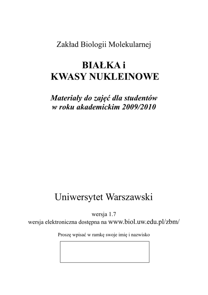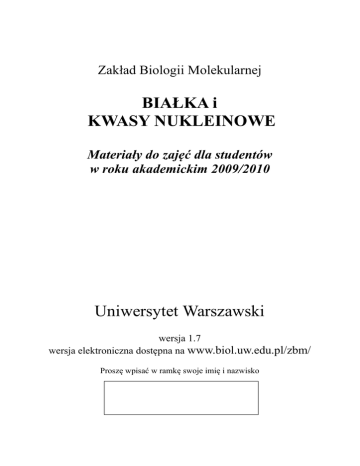 BIAŁKA i KWASY NUKLEINOWE Uniwersytet Warszawski