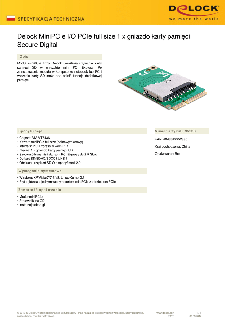 Delock MiniPCIe I/O PCIe full size 1 x gniazdo karty pamięci Secure
