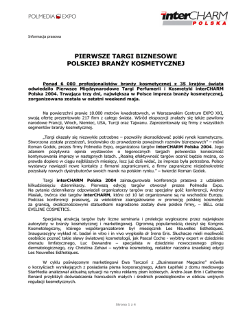 PIERWSZE TARGI BIZNESOWE POLSKIEJ BRAN Y KOSMETYCZNEJ