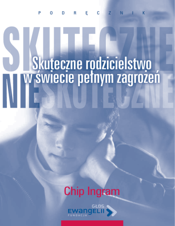 P O D R Ę C Z N I K Skuteczne rodzicielstwo w świecie pełnym zagrożeń Chip Ingram Jak korzystać z podręcznika? Celem cyklu Skuteczne rodzicielstwo w świecie pełnym zagrożeń jest zrewolucjonizowanie twoich poglądów na temat rodzicielstwa. W dziewięciu sesjach odkryjesz pełne mocy zasady, które pozwolą ci być skutecznym rodzicem niezależnie od okoliczności. Każda z dziewięciu części wykładów, znajdujących się na płytach dvd, ma odpowiedni zestaw pytań do dyskusji, ćwiczenia oraz zadania do wykonania w domu. Niezależnie od tego, czy rozpoczniesz ten proces sam, czy z grupą, gorąco zachęcam cię, byś oglądał jedną część dvd tygodniowo, co pozwoli ci w pełni przemyśleć treść każdej z nich. Notatki W każdej części znajdziesz puste miejsca do uzupełnienia przy pytaniach korespondujących z wykładem – punkt po punkcie. Oglądając nagranie, wpisuj kluczowe myśli oraz wersety. To jest istotna część procesu uczenia się, jeden ze sposobów, by upewnić się, że zapamiętujesz to, czego się uczysz. Pytania do dyskusji w małych grupach W podręczniku znajdziesz zbiór pytań do dyskusji w grupie. Pytania te mają pomóc każdemu otworzyć swoje serce i wyrazić dotychczasowe poglądy. Dzieląc się swoimi odpowiedziami w grupie, przyspieszycie proces przemiany i będziecie dla siebie zachętą. Praktyczne kroki Dyskusja w grupach obejmuje także praktyczne kroki, które mają pomóc ci w konkretnym zastosowaniu tego materiału. Twój czas będzie wzbogacony, gdy każdy w grupie podzieli się nowymi pomysłami. W domu Te osobiste rozważania mają na celu przenieść przedstawione zasady ze stron podręcznika bezpośrednio do twojego osobistego życia. Właśnie w tym kierunku zmierza cała seria: od rozważania do zastosowania. Gdy zgłębiasz ten materiał każdego dnia – rozpoczyna się proces zmiany. Ważne jest, byś wypełniał cotygodniowe zadania. Copyright © 2009 by Living on the Edge and Chip Ingram. All rights reserved. Printed in the U.S.A. For more information: www.LivingontheEdge.org or email [email protected]. All Scripture quotations, unless otherwise noted, are taken from the Holy Bible, New International Version. Copyright © 1973, 1978, 1984 International Bible Society. Used by permission of Zondervan. All rights reserved. 930305/2/5000/0209 Copyright do wydania polskiego ©2010 Fundacja Głos Ewangelii, ul. Zagórna 10, 00-441 Warszawa, www.gospel.pl, [email protected] Tłumaczenie: Magda Welman; skład: Alina Merha. Cytaty biblijne zaczerpnięto z Biblia to jest Pismo Święte, Brytyjskie i Zagraniczne Towarzystwo Biblijne, Warszawa 1975 oraz z Pisma Świętego Nowego Testamentu Nowe Przymierze wyd. przez Ewangeliczny Instytut Biblijny – Liga Biblijna w Polsce, Poznań – Bydgoszcz 2008 Spis treści Słowo od nauczyciela . . . . . . . . . . . . . . . . . . . . . . . . . . . . . . . . . . . . 4 1 Sesja Pierwsza: Jak wychować pozytywnie nastawione dziecko w świecie pełnym zagrożeń . . . . . . . . . . . . . . . . . . . . . . . . . . . . . . . . . . . . . . . . 5 2 Sesja Druga: Budowanie relacji opartych na silnej więzi . . . . . . . . . . . . . . . . . . . . 11 3 Sesja trzecia: Jak w pełni rozwinąć potencjał dziecka . . . . . . . . . . . . . . . . . . . . . . 17 4 Sesja czwarta: Boży sposób uczenia posłuszeństwa . . . . . . . . . . . . . . . . . . . . . . . . 23 5 Sesja piąta: Jak skutecznie dyscyplinować dziecko . . . . . . . . . . . . . . . . . . . . . . . 29 6 Sesja szósta: Kara a dyscyplina . . . . . . . . . . . . . . . . . . . . . . . . . . . . . . . . . . . . . . . 35 7 Sesja siódma: Słowa, które dyscyplinują . . . . . . . . . . . . . . . . . . . . . . . . . . . . . . . . . 41 8 Sesja ósma: Pięć „wygładzonych kamieni” dla skutecznego rodzicielstwa . . . . . . 47 9 Sesja dziewiąta: Gdy wszystko inne zawodzi . . . . . . . . . . . . . . . . . . . . . . . . . . . . . . . 54 Narzędzia . . . . . . . . . . . . . . . . . . . . . . . . . . . . . . . . . . . . . . . . . . . . . 60 Skuteczne rodzicielstwo w świecie pełnym zagrożeń 3
